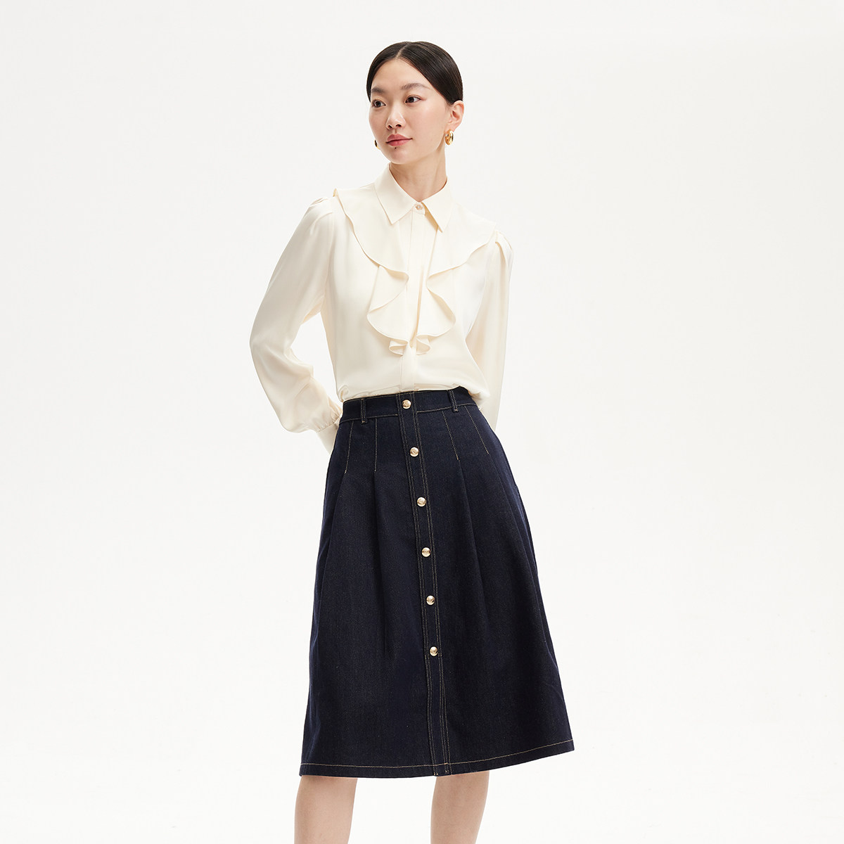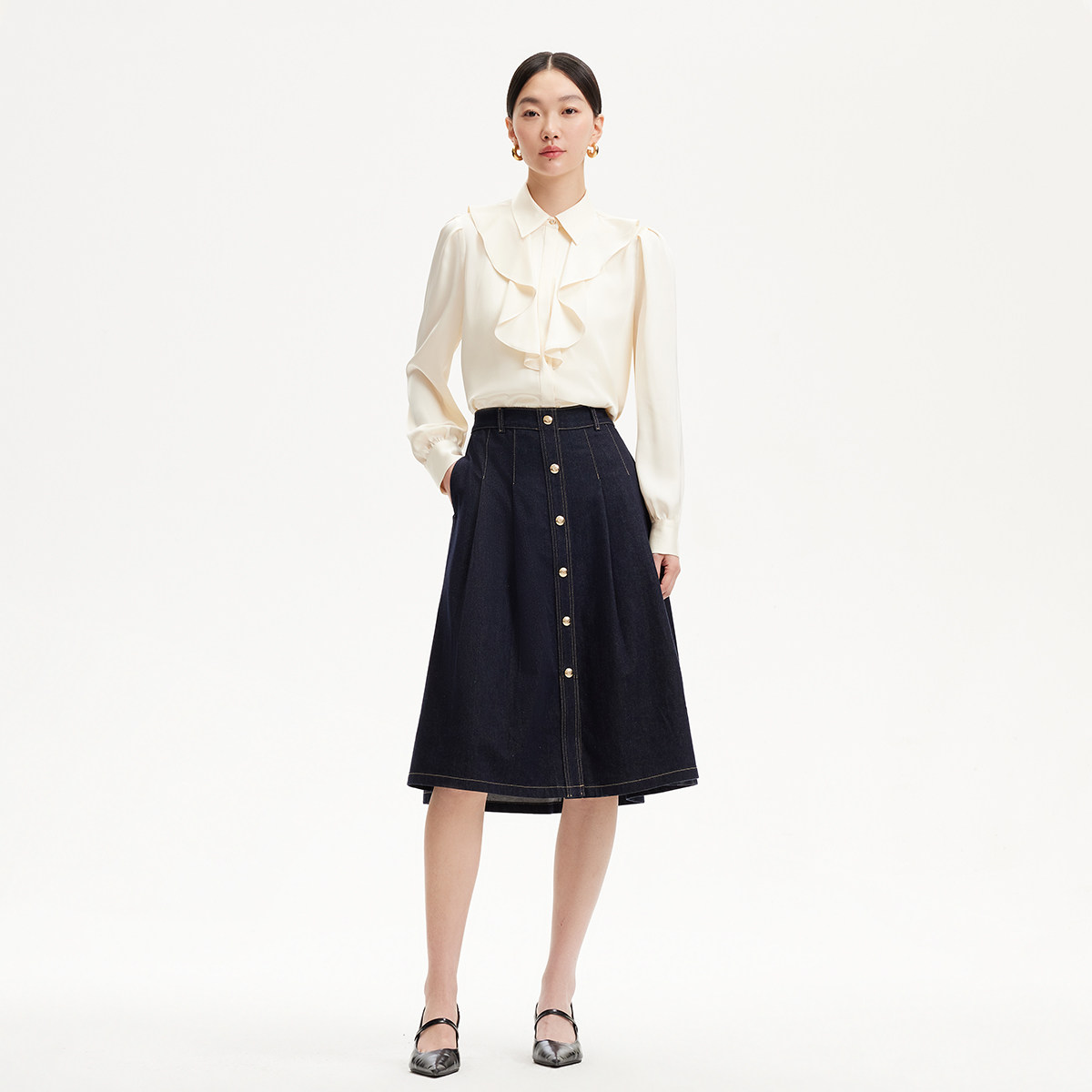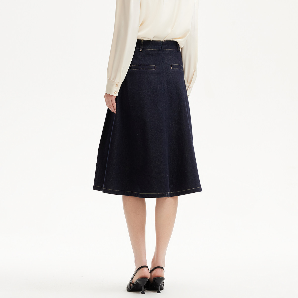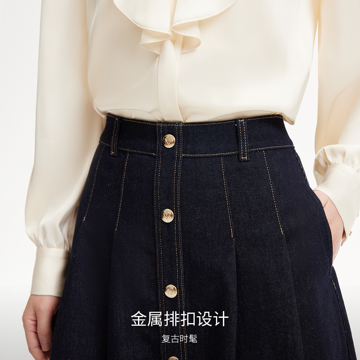 Vero Moda奥莱牛仔半身裙2025秋季新款高腰A字纽扣装饰中长款裙子