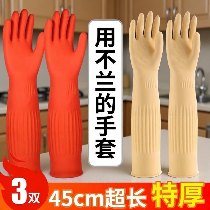 加长家务手套橡胶乳胶防水洗碗厨房清洁洗衣家用耐磨耐用加厚餐饮