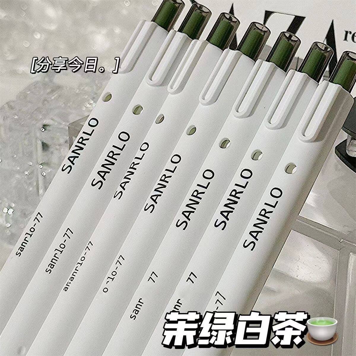 【工厂直销】桶装茉莉白茶刷题笔ins风高颜值中性笔按压式黑笔学生考试签字笔专用0.5mm速干