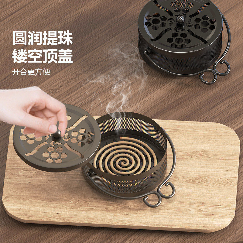 复古铁艺蚊香炉带盖檀香熏香炉室内可挂家用蚊香盘托蚊香支架薰炉