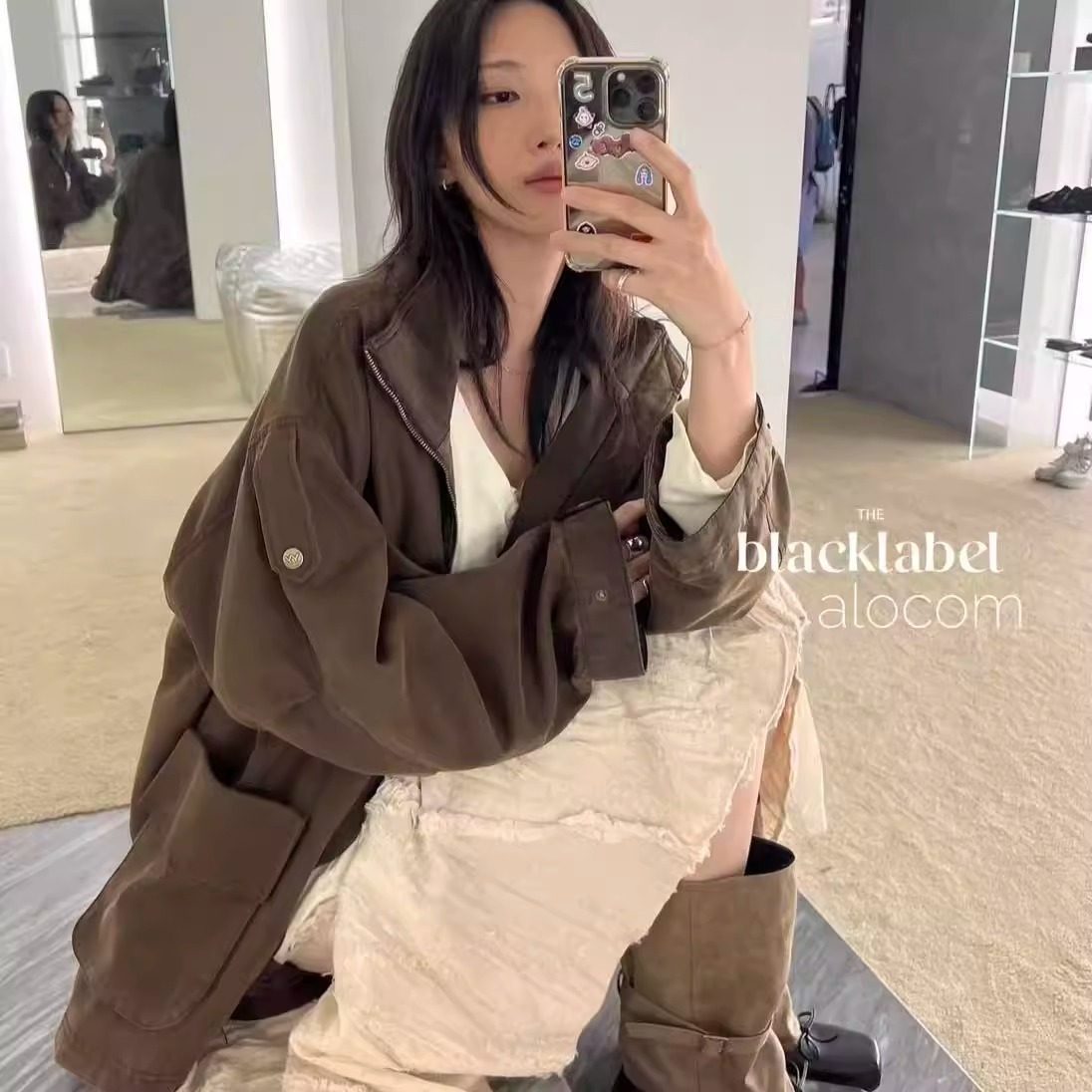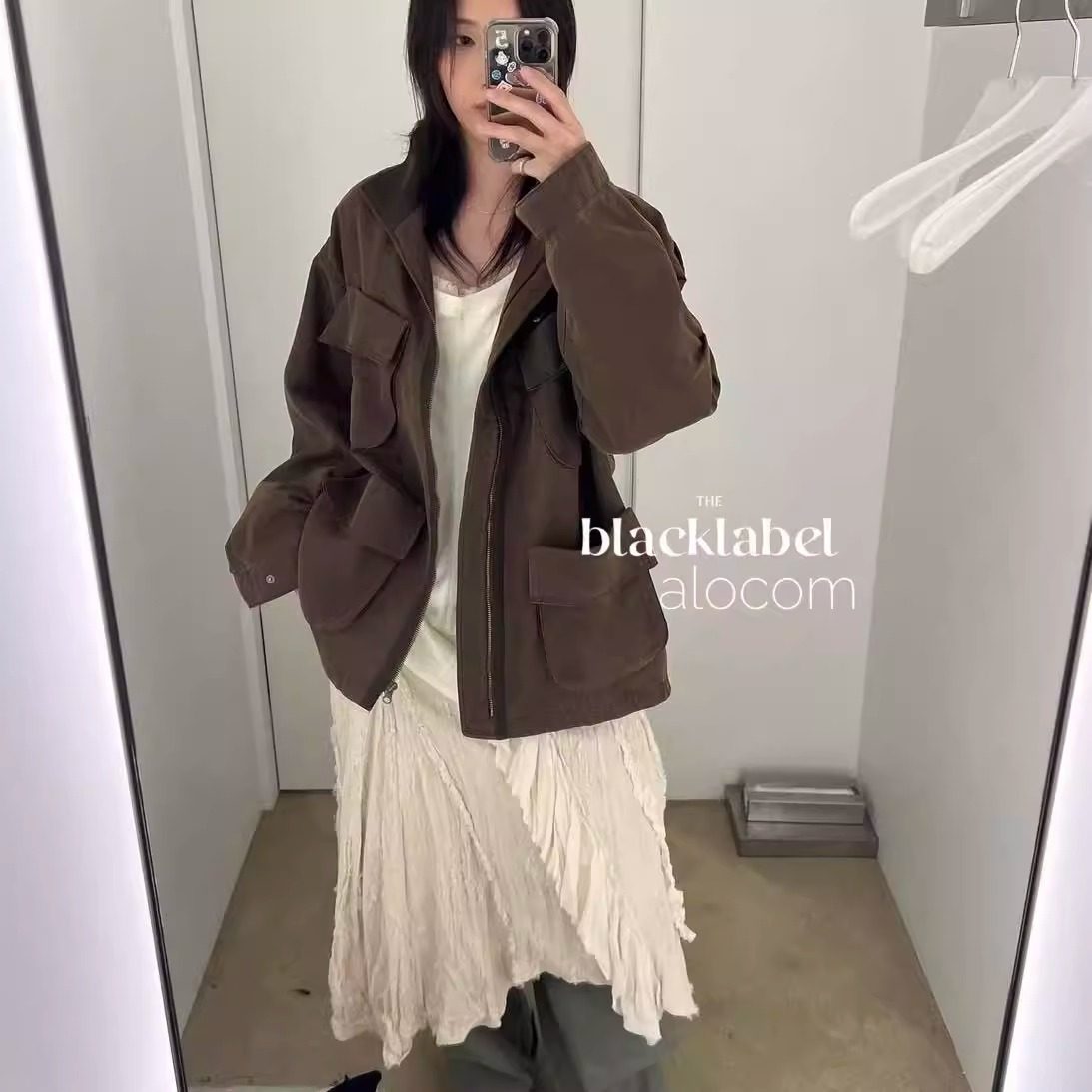 tina open yy25秋新款做旧复古工装口袋拉链宽松夹克外套上衣男女