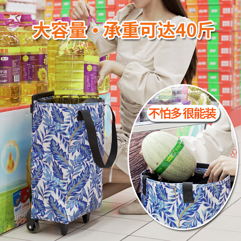购物袋带轮子可折叠买菜小拉车拖轮便携式大容量推车超市手提袋