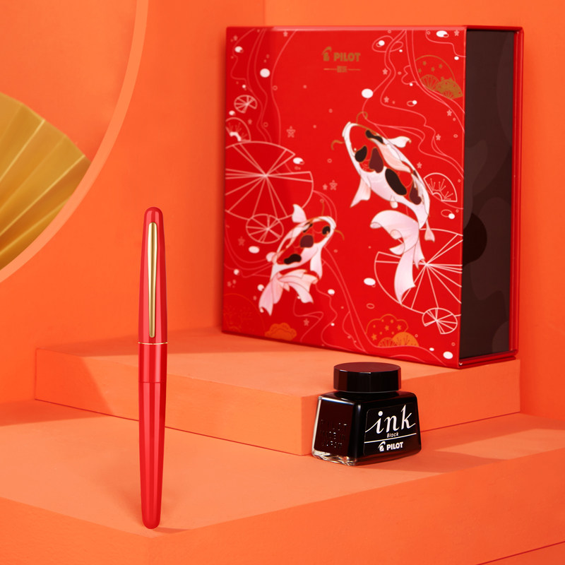 日本Pilot百乐钢笔88G如意锦鲤系列红色礼盒装锦鲤盒MR PREMIUM 大学生送礼墨水金属练字笔