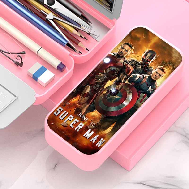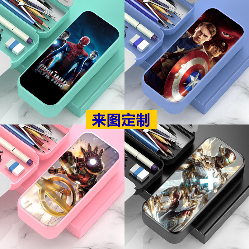 钢铁侠美国队长大容量多功能文具盒男孩女孩小学生创意铅笔盒双层