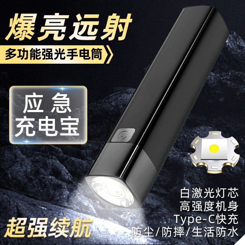 强光手电筒户外应急灯超长续航手电多功能远射随身灯可充电照明灯