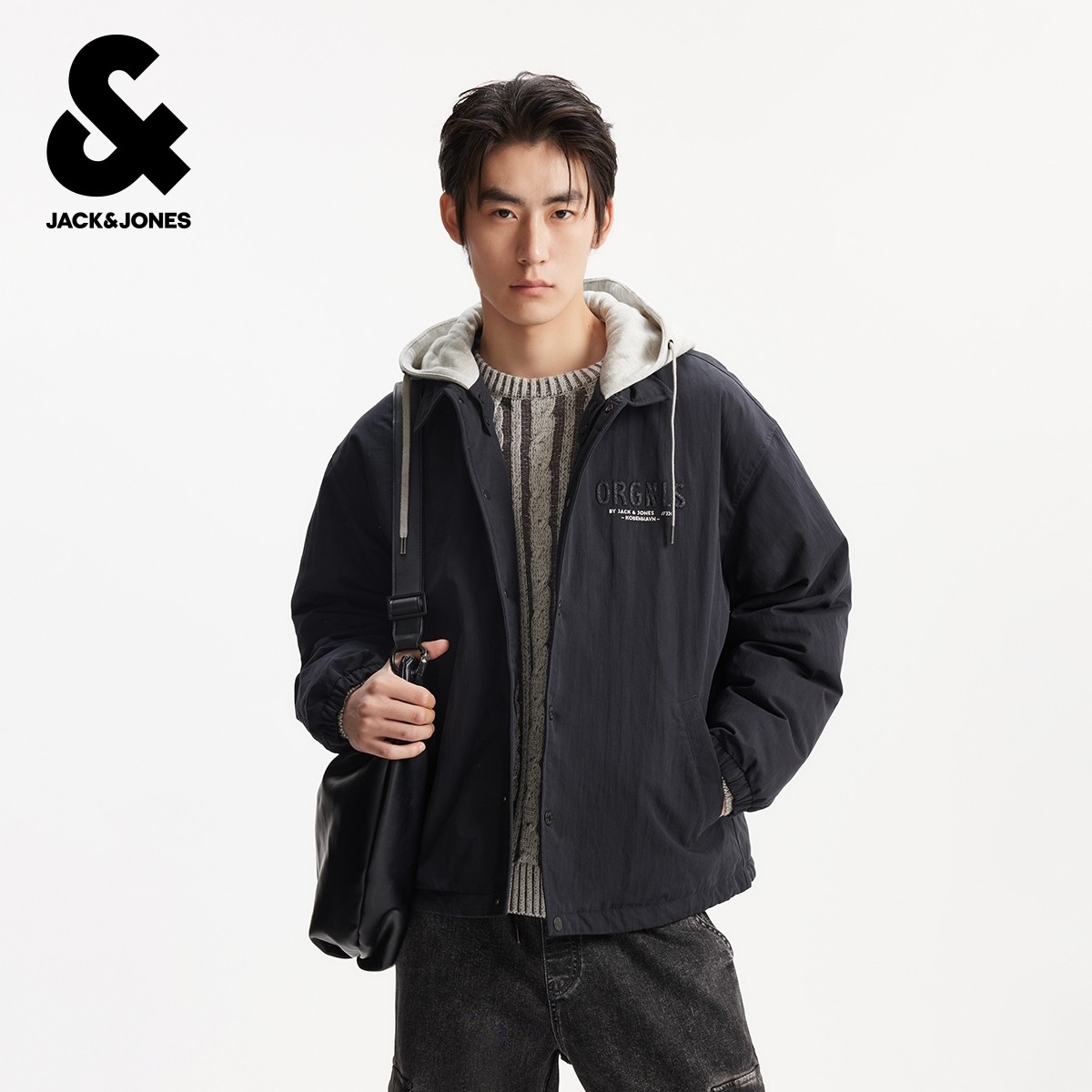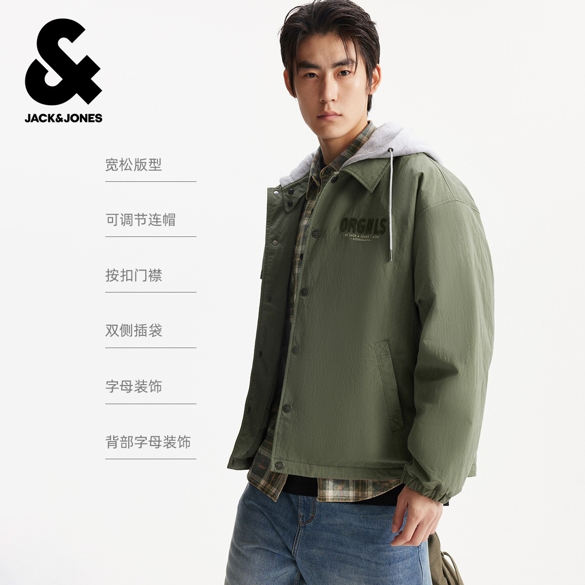 杰克琼斯男装秋冬时尚百搭潮流宽松羽绒服外套上衣字母装饰连帽衣