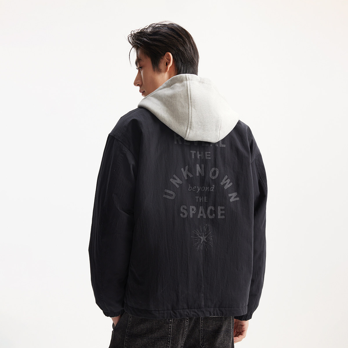 按扣门襟双侧插袋 字母装饰 背部字母装饰