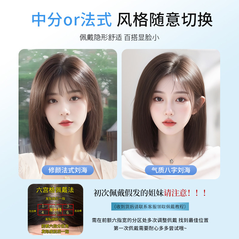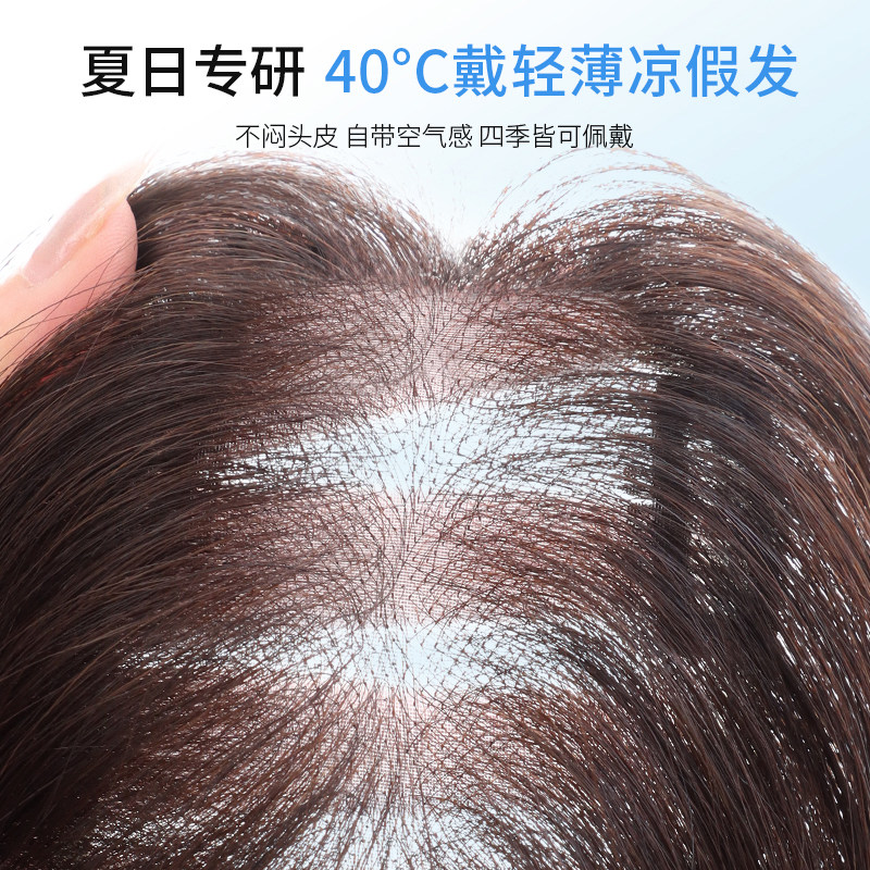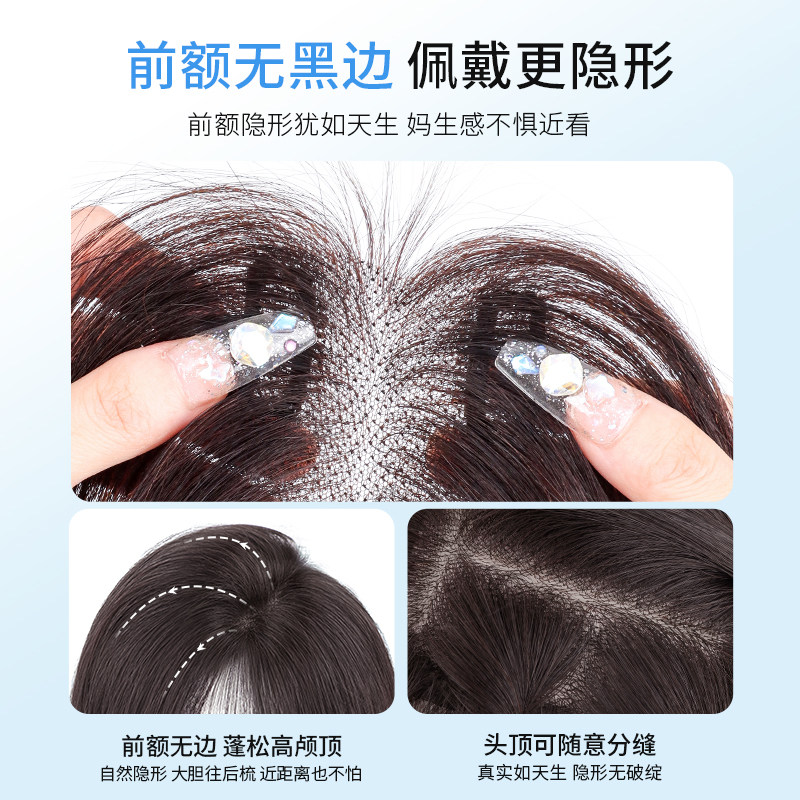 递针假发片女头顶补发片真发全真人发无痕遮白发蓬松增发量假发片