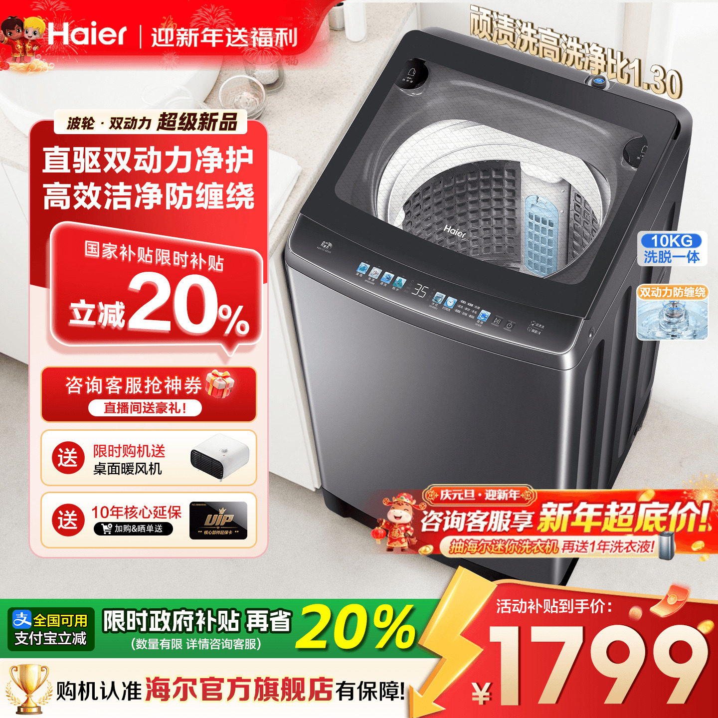 [国补20%]海尔洗衣机60E家用10/12公斤防缠绕全自动手搓洗波轮50E
