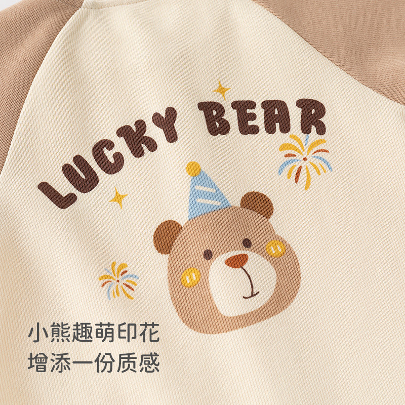小猪大卫新生儿秋季保暖连体衣男女宝宝卡通印花中开夹棉爬服