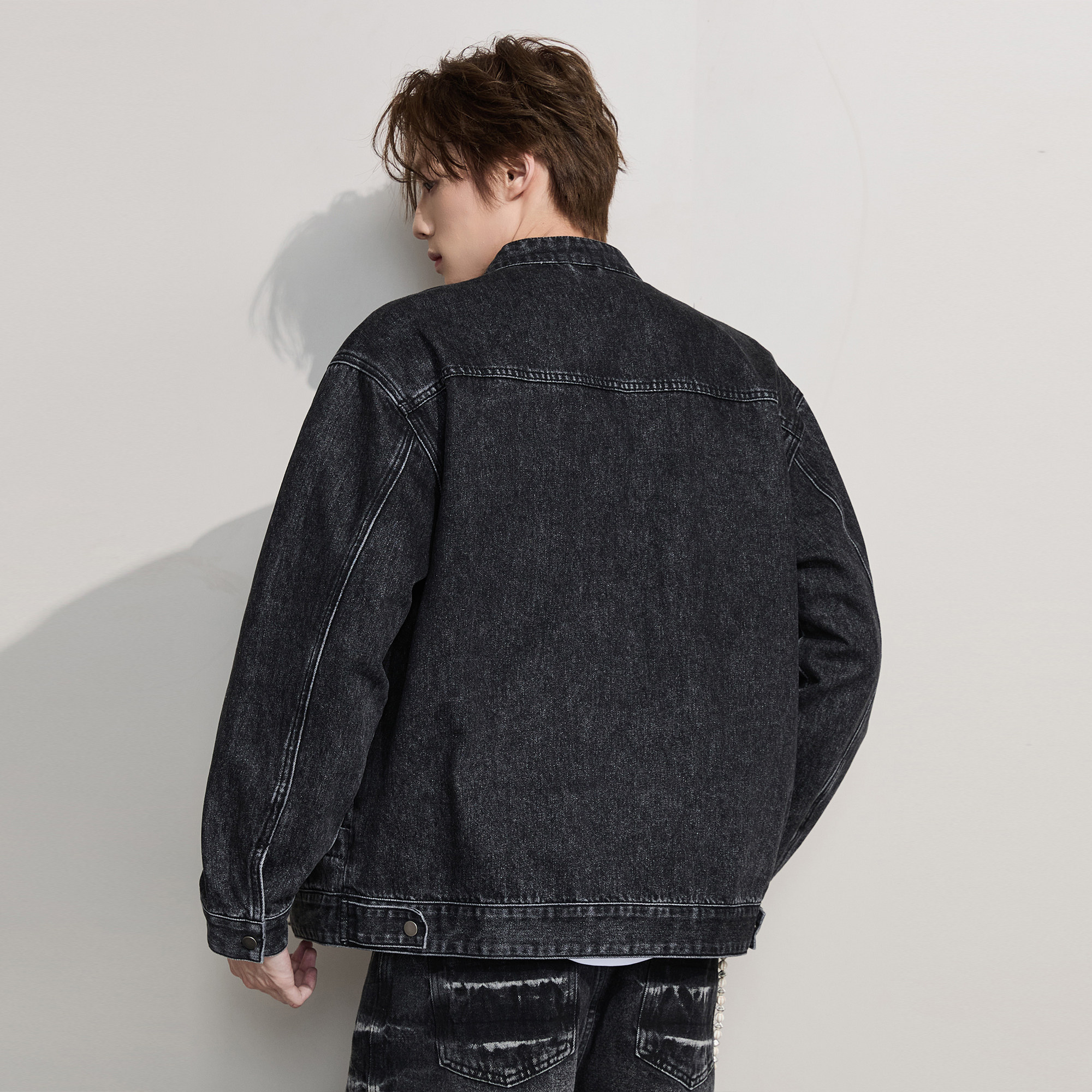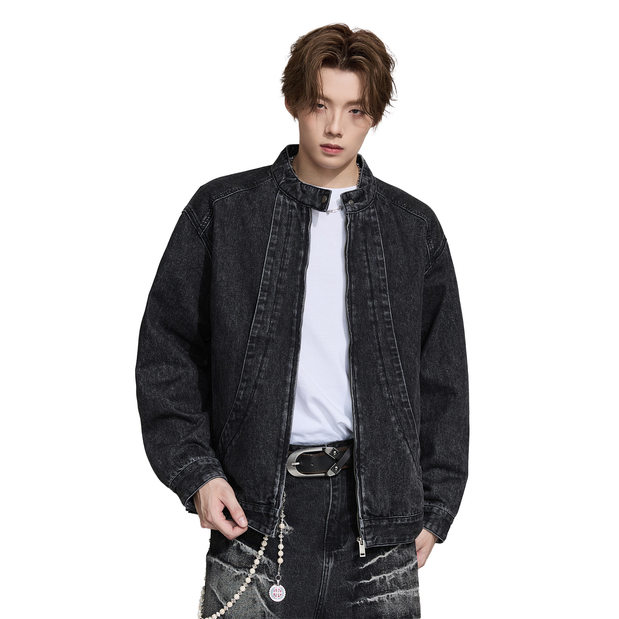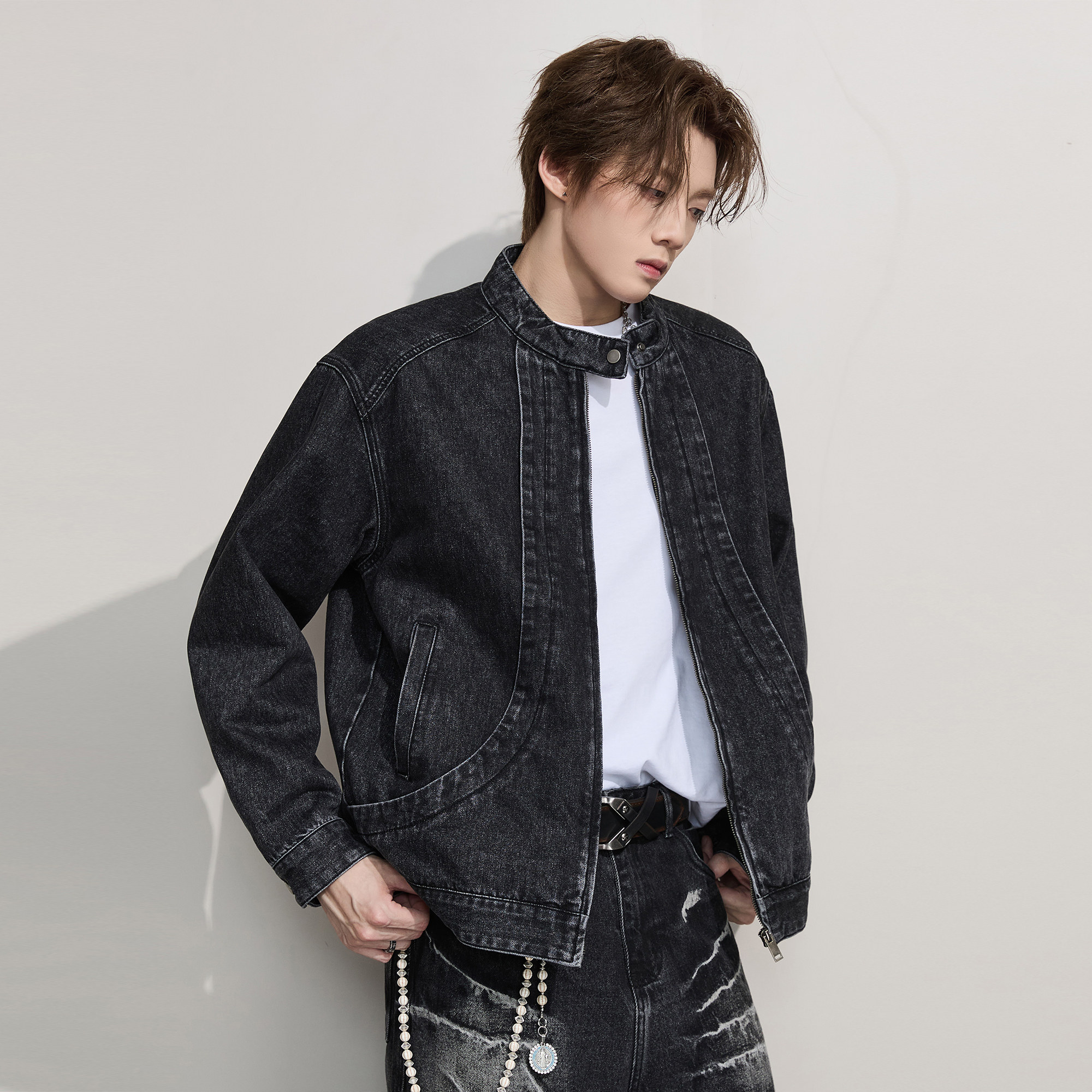 ALLIN 美式短款水洗牛仔外套男秋冬季情侣机车潮牌立领牛仔衣夹克