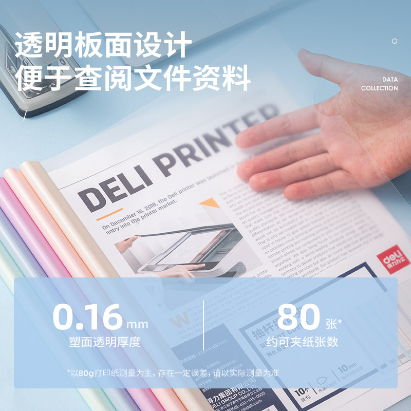 得力学生抽杆夹A4试卷夹马卡龙文件夹拉杆文具透明彩色资料夹大容量包书皮夹子小初高中收纳册学习插页63110