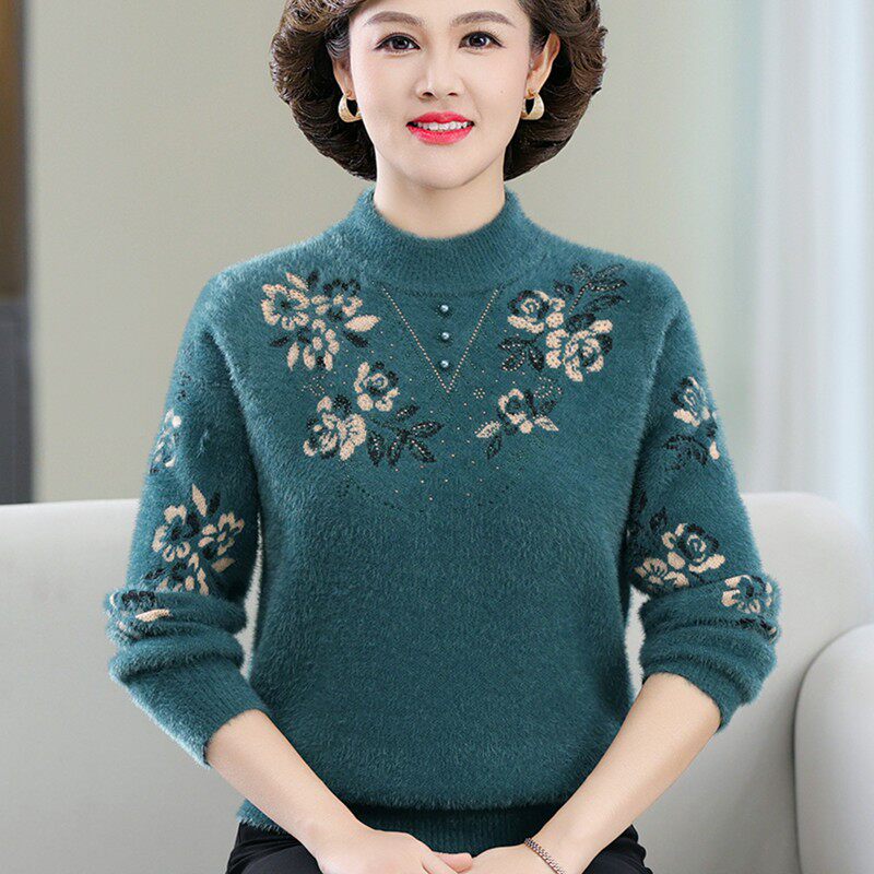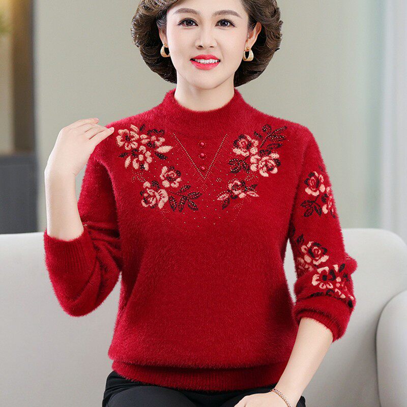 妈妈装毛衣女加绒老年人保暖内搭水貂绒上衣中年女中老年打底衫