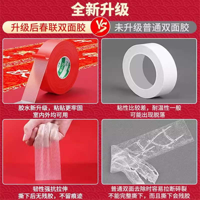 贴春联对联双面胶带不留红色网格布基无痕胶布婚庆婚房装饰气球喜字福字年画高粘度强力固定墙面神器粘性易撕