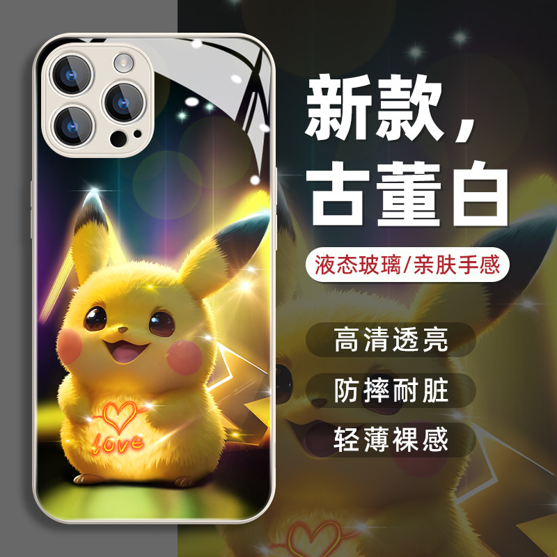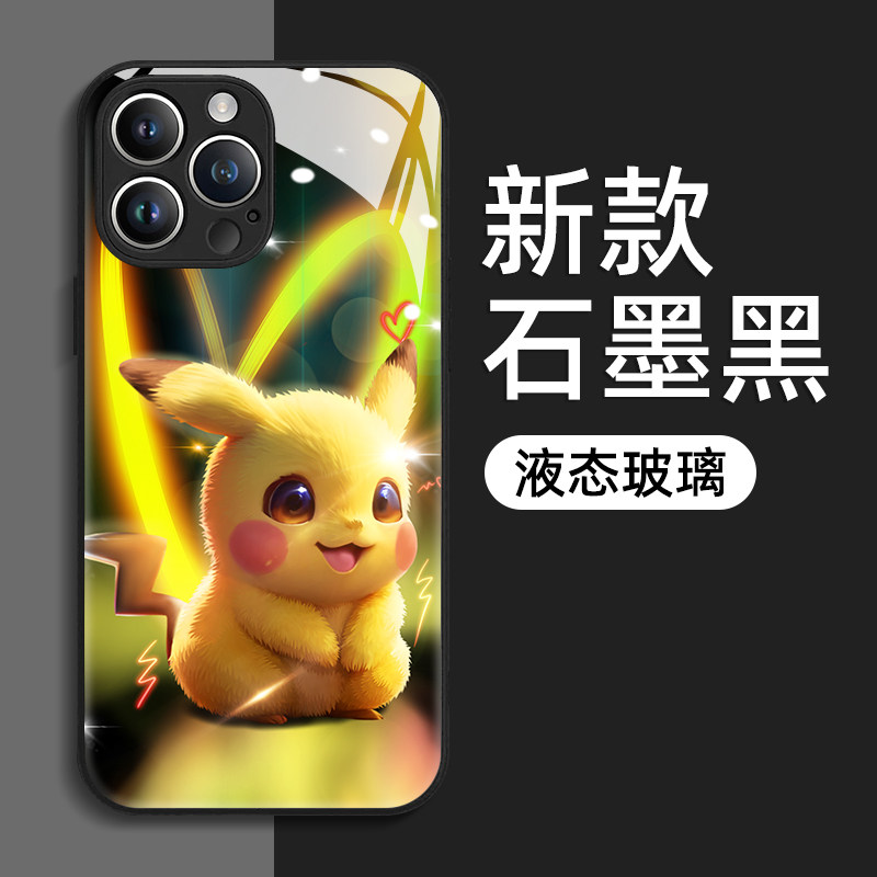 皮卡丘苹果15/14手机壳13钢化玻璃iPhone12/11保护套Pro硅胶promax全包防摔plus男女新款情侣外壳mini高级