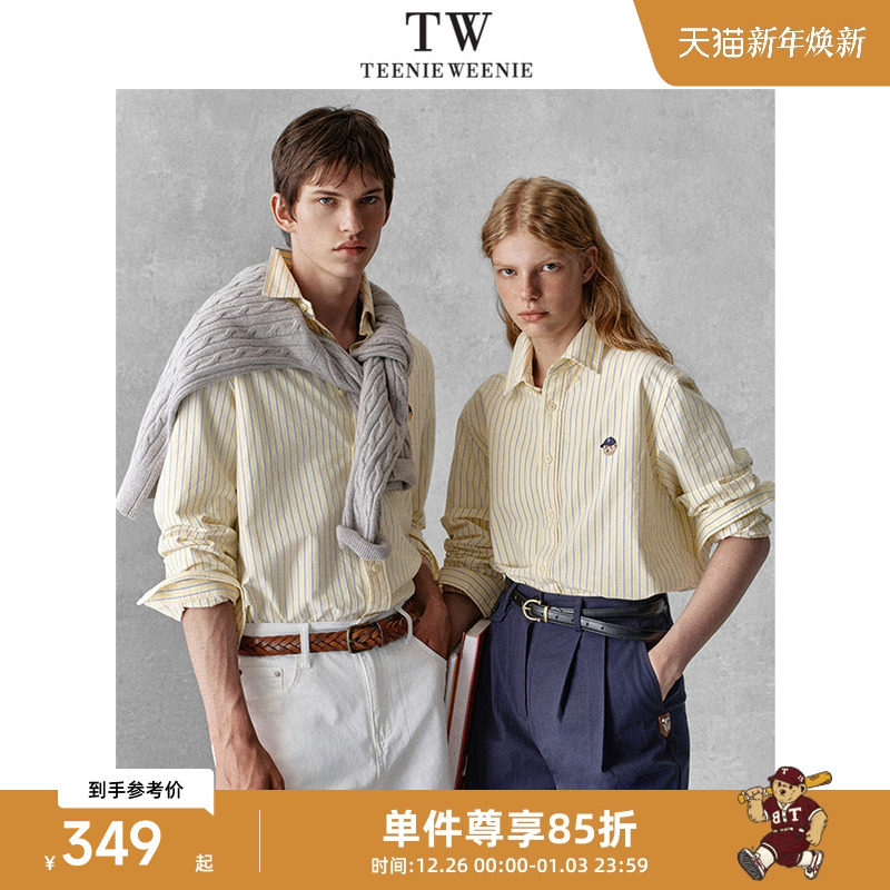 Teenie Weenie小熊男装休闲长袖宽松牛津纺条纹翻领上衣衬衫