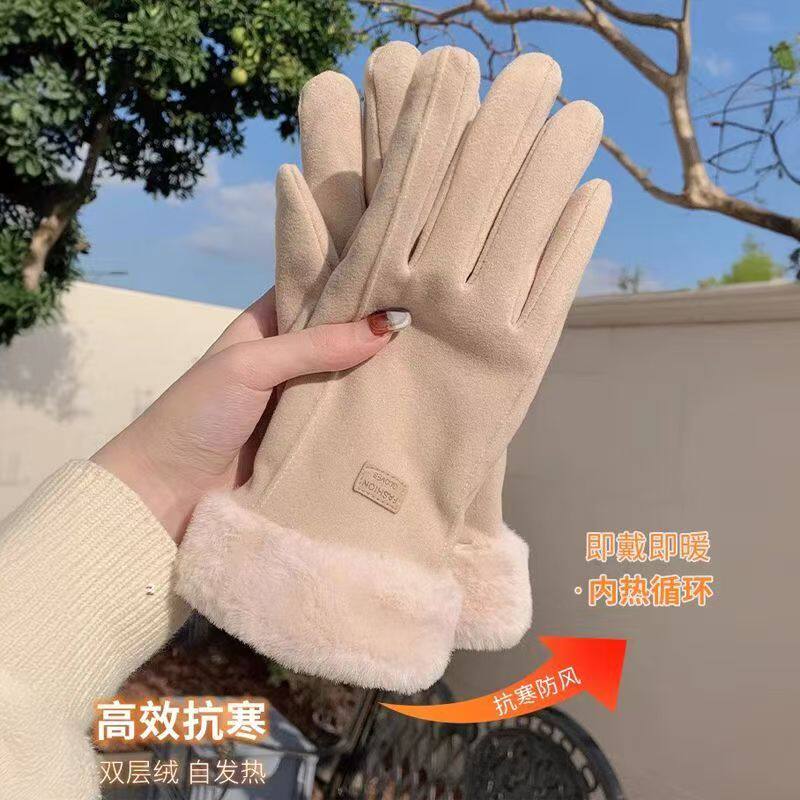 保暖手套女秋冬触屏加厚户外骑行开车德绒防风运动手套防冻男女款