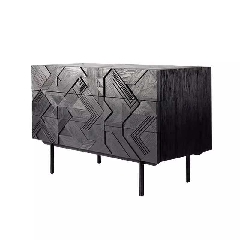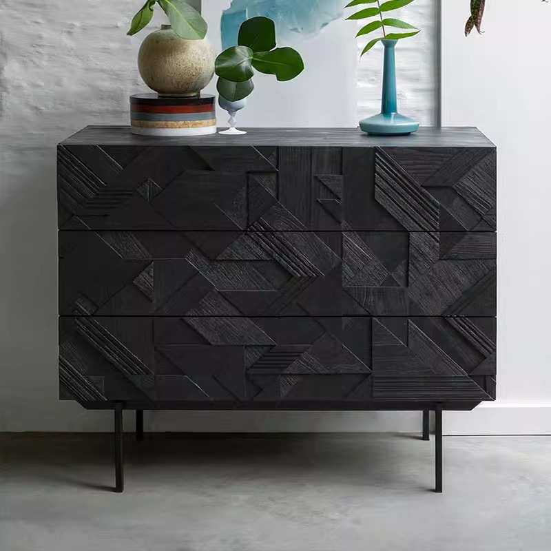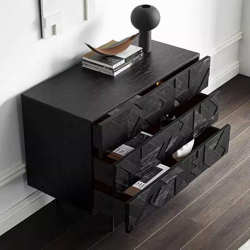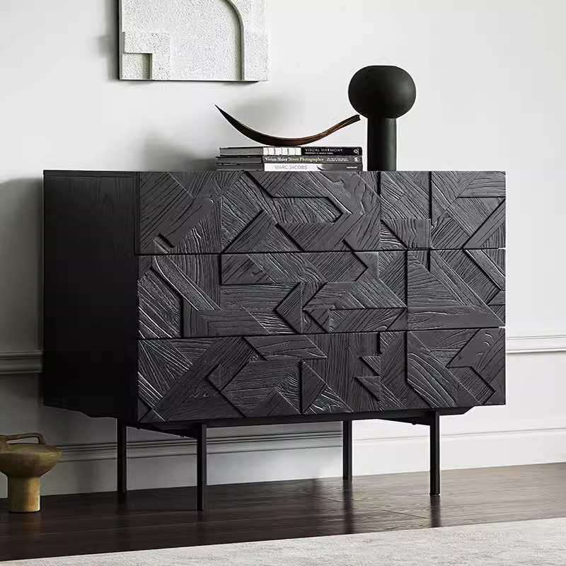 北欧实木三斗柜中古储物柜诧寂风复古雕花进口白橡木餐边柜玄关柜