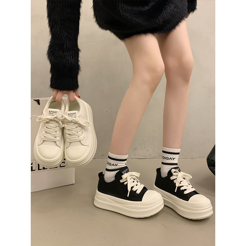 帆布鞋松糕厚底增高小白鞋女2026新款春季小个子女鞋休闲运动板鞋