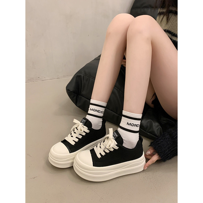 【明星同款】Wander around春秋款黑色厚底增高休闲板鞋男女同款