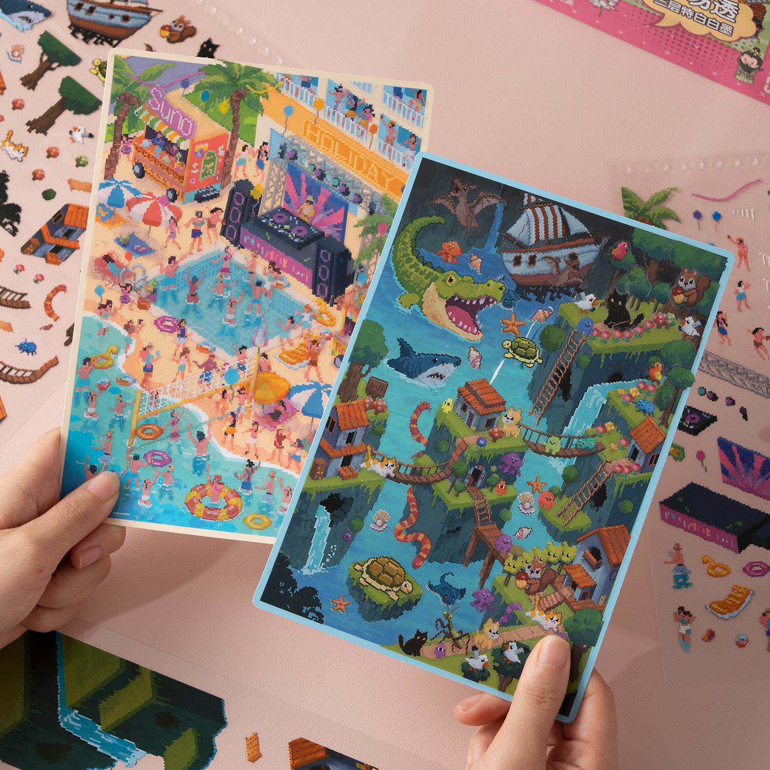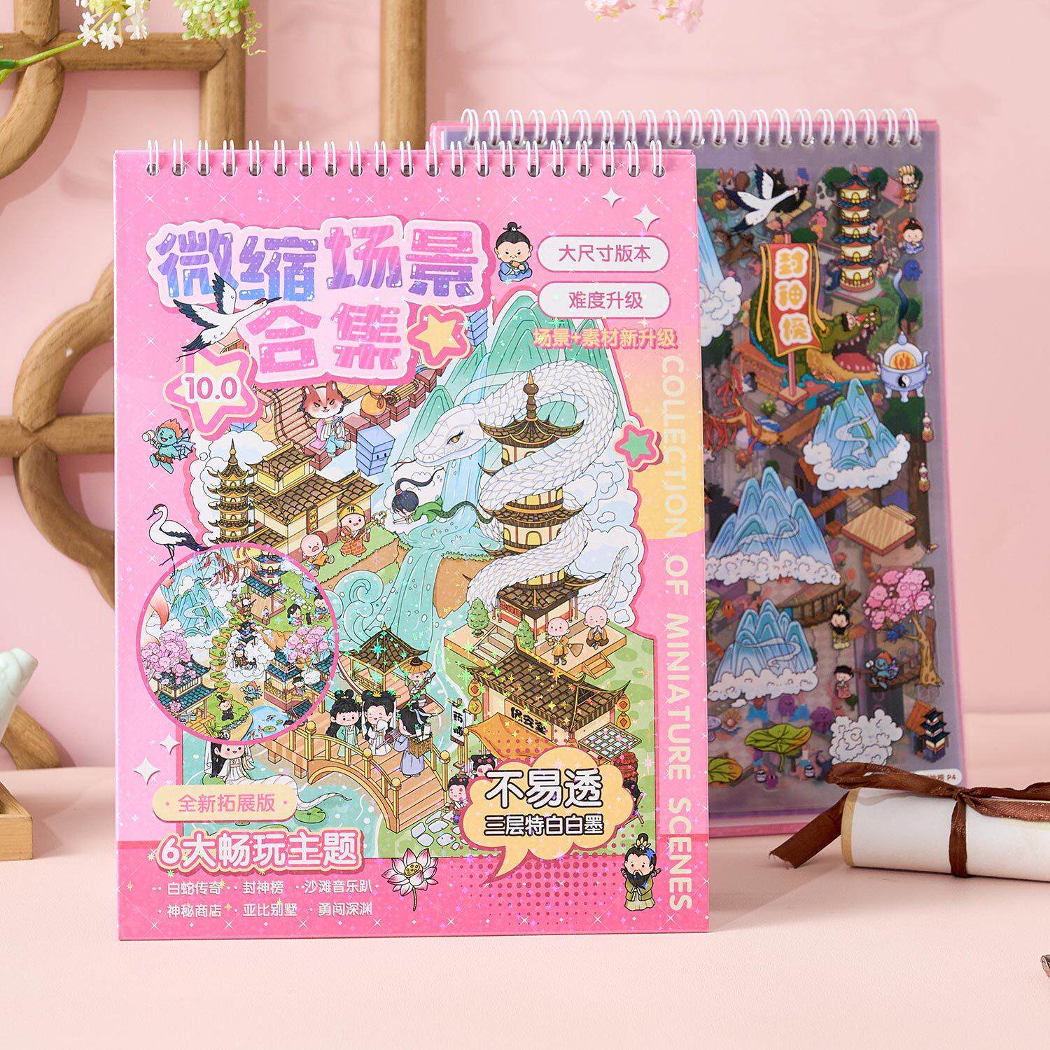 新款筑梦3d立体造景贴纸微缩场景合集本 大号版diy手工小屋手账贴儿童益智玩具素材贴画解压大版3D手账装饰贴