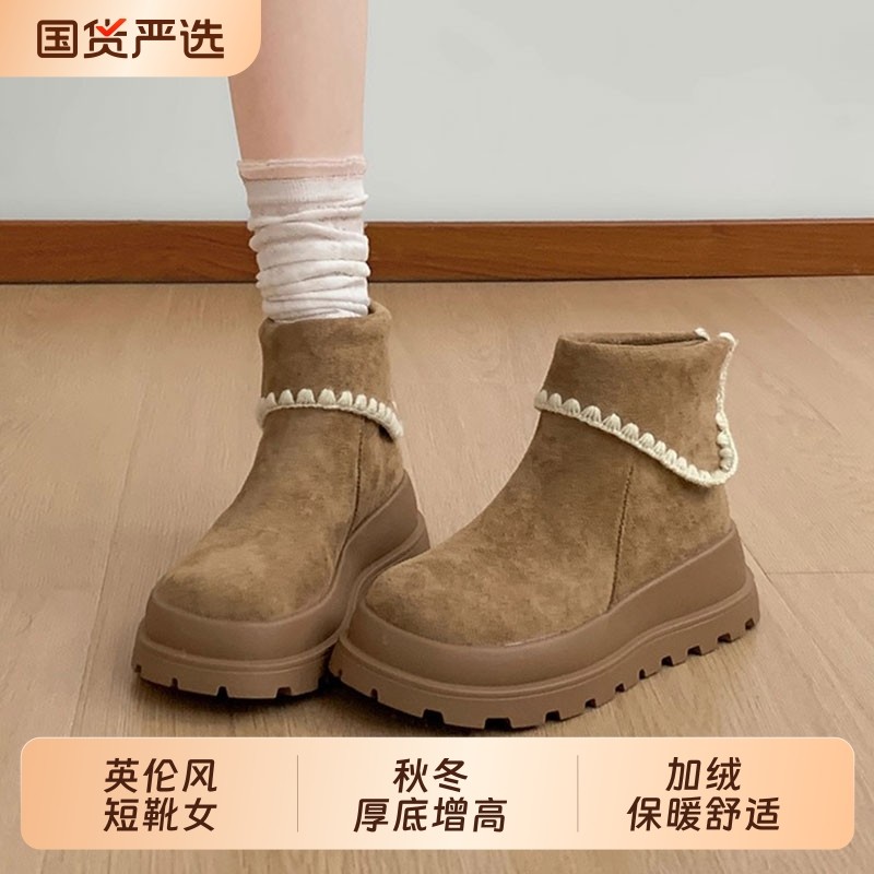 2025新款短靴女英伦复古秋冬厚底增高美拉德棕色巨好看加绒马丁靴