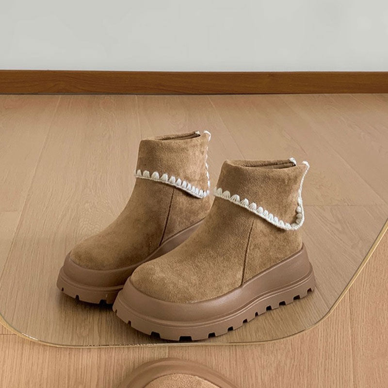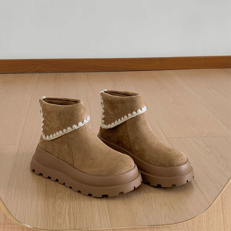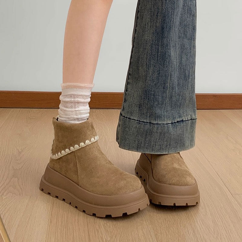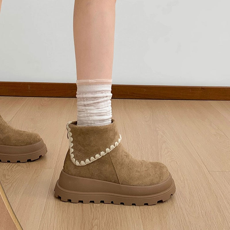 miu家厚底雪地靴女冬季真皮短靴羊毛侧拉链增高厚底加绒毛毛棉鞋