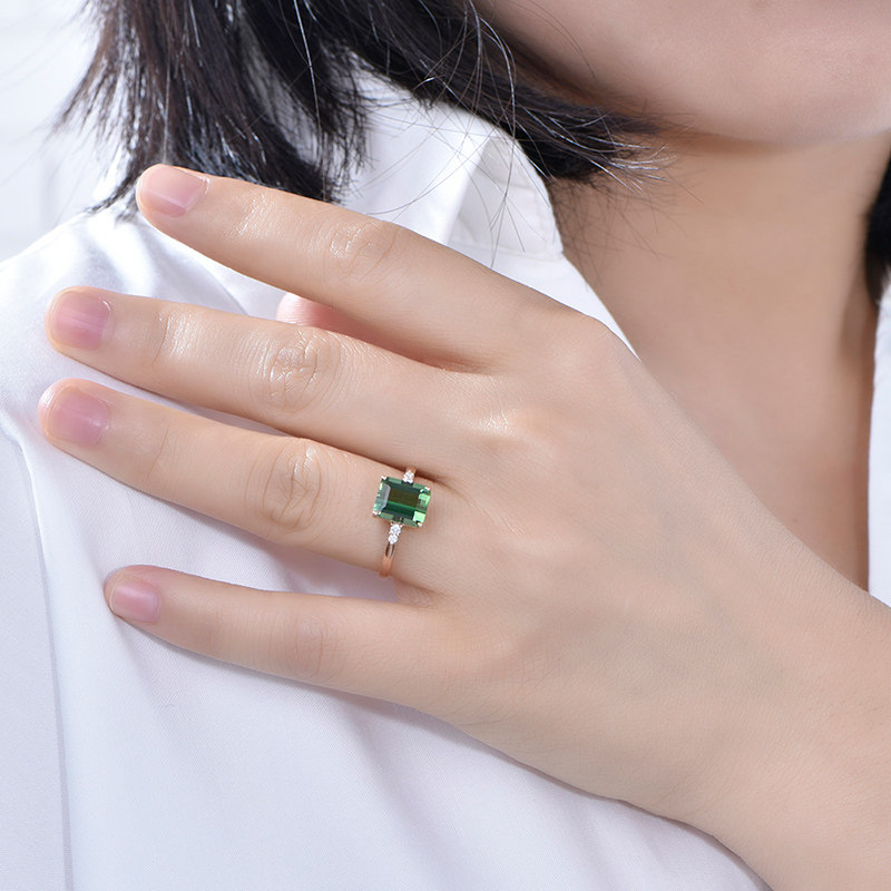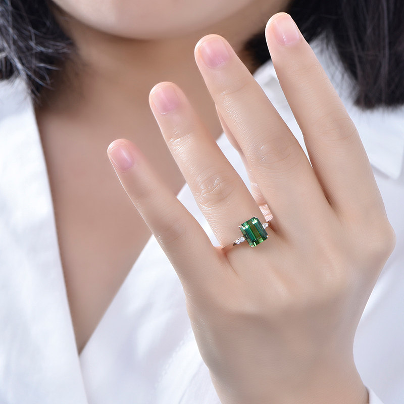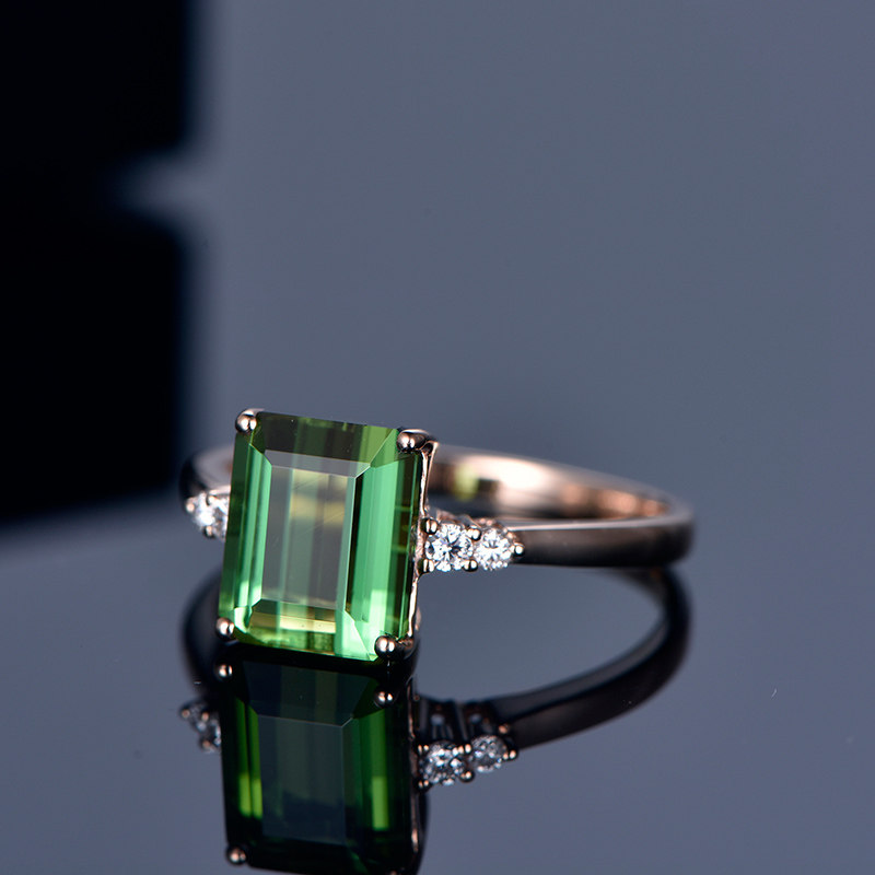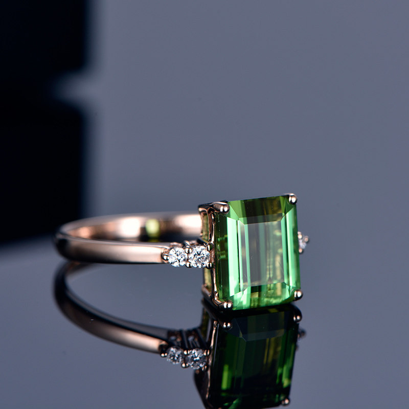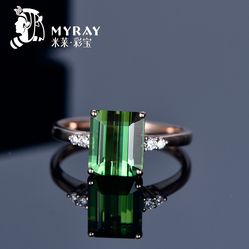 米莱珠宝 2.7克拉天然绿碧玺戒指 18K金镶嵌钻石 玫瑰金女戒定制