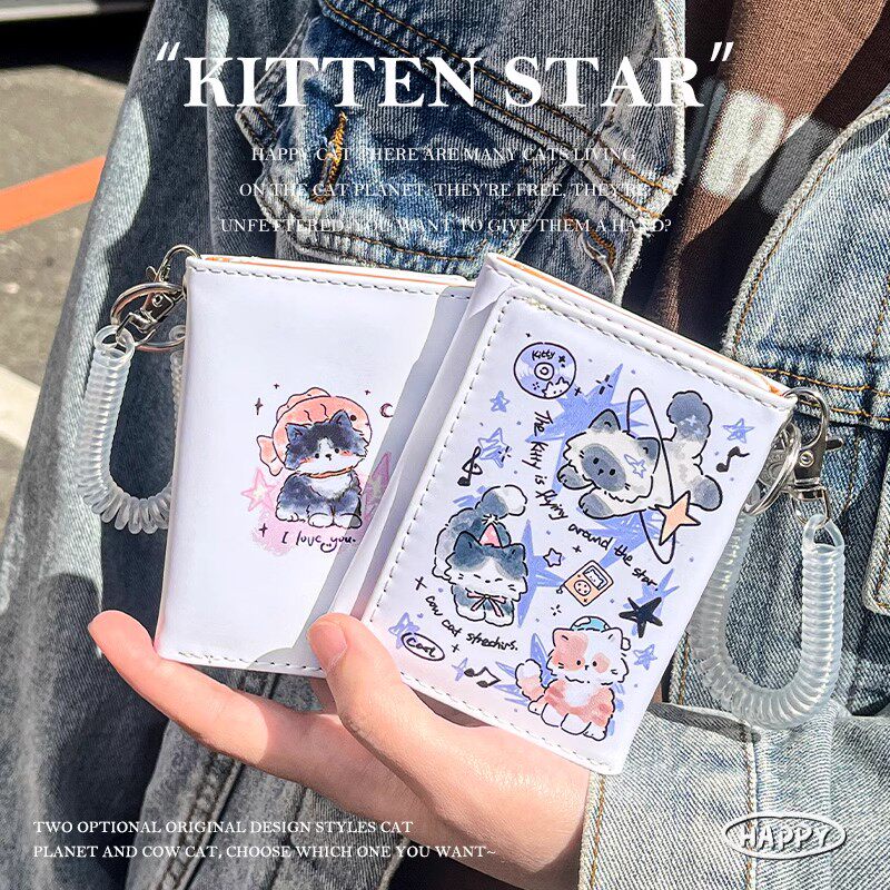 可爱卡通猫咪短款钱包女多卡位新款学生儿童小巧便携零钱包卡包男