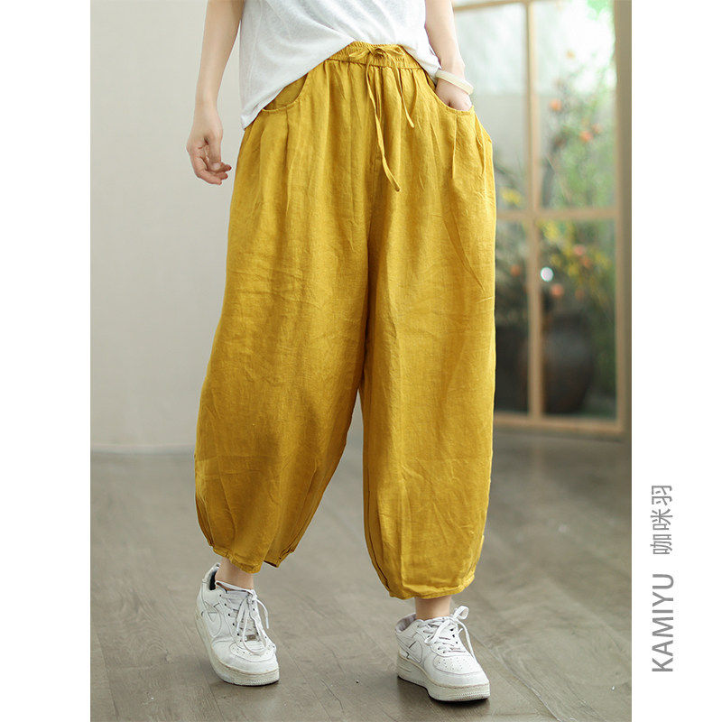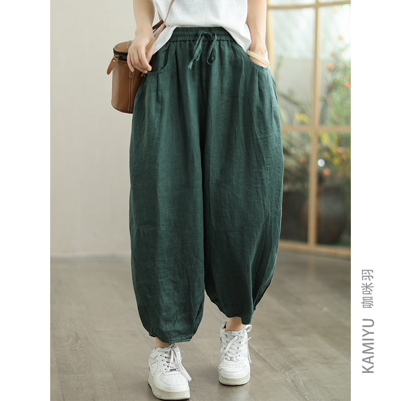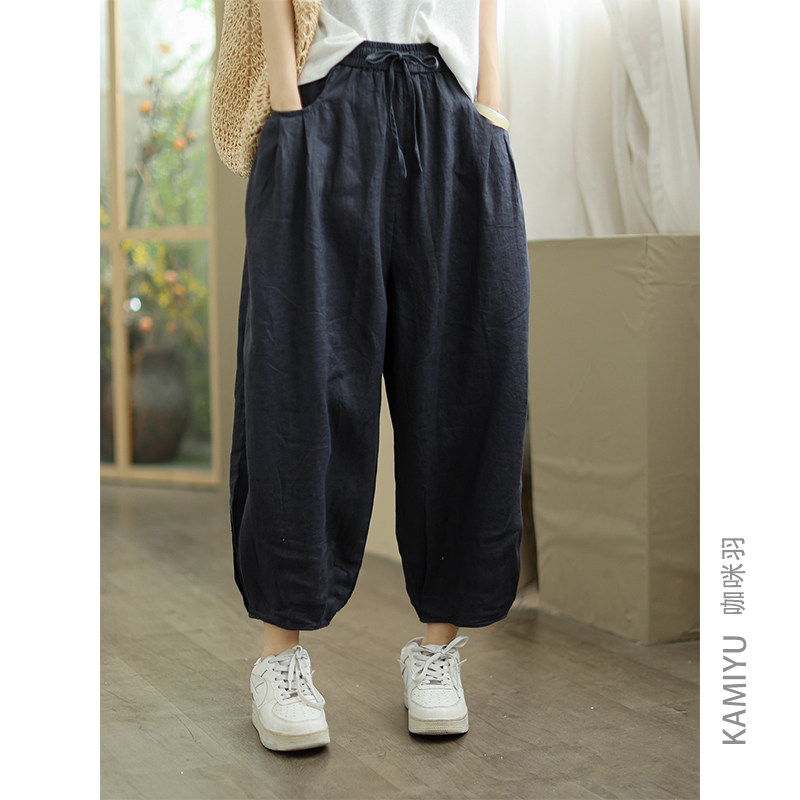 咖咪羽100%亚麻休闲裤女新款时尚直筒宽松拼接薄款百搭女装裤子