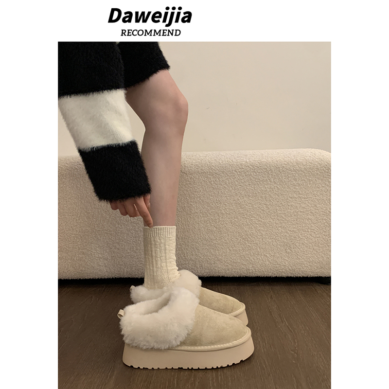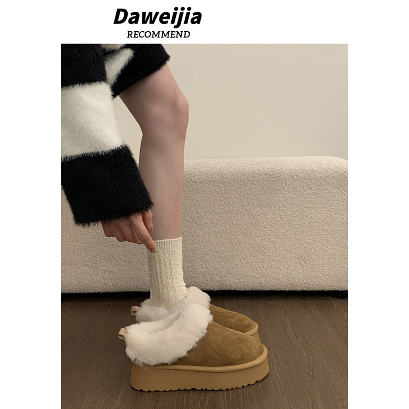 低帮厚底雪地靴女2025新款冬季懒人一脚蹬毛毛棉鞋加绒加厚女鞋子