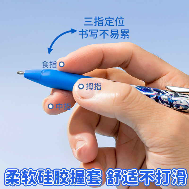 晨光按动中性笔黑色笔速干顺滑高颜值红蓝碳素笔考试办公用签字笔