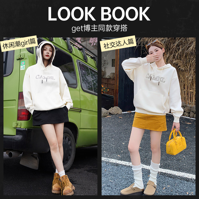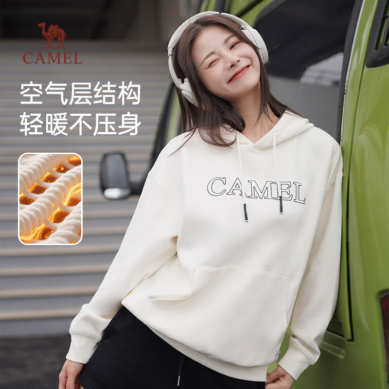 骆驼女装连帽卫衣2025新款秋冬中性宽松美式重磅情侣长袖休闲外套