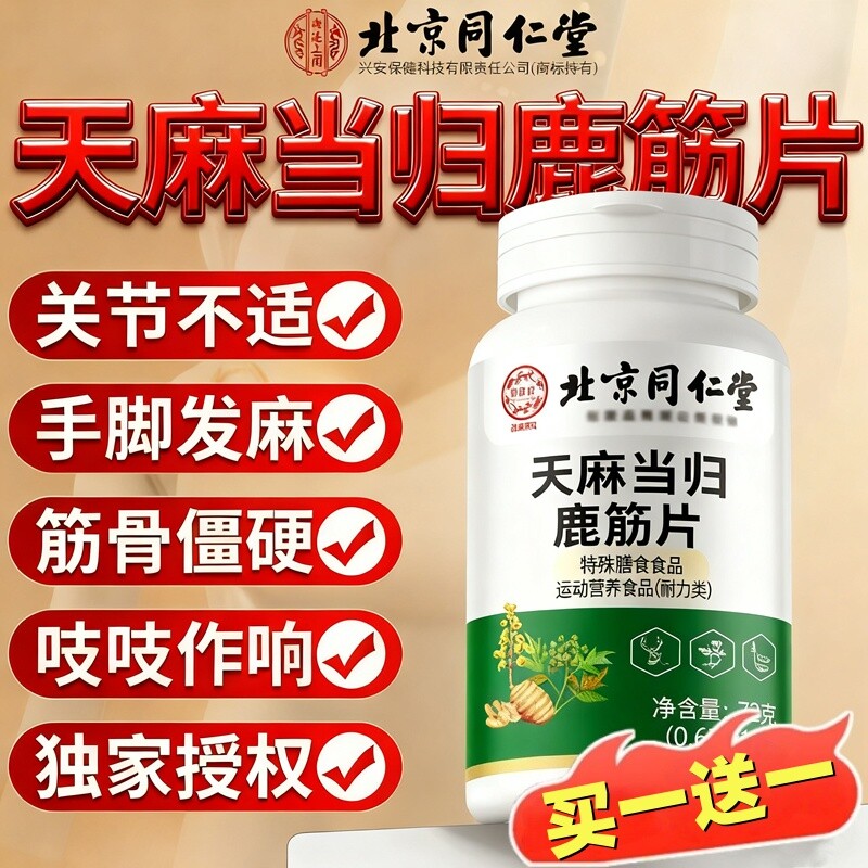 北京同仁堂天麻当归鹿筋片丸中老年关节手脚不适官方旗舰店正品
