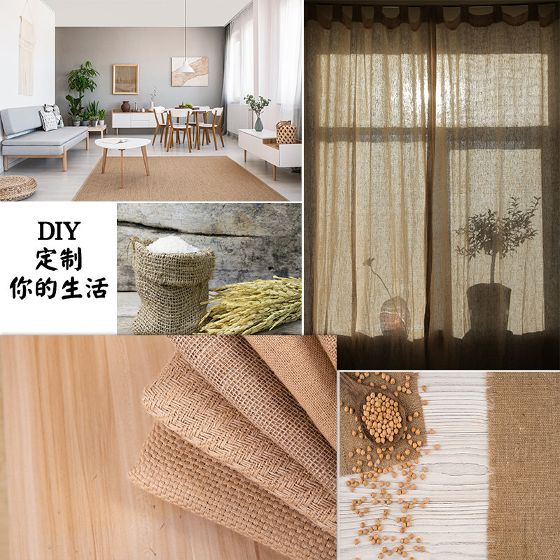 加厚黄麻亚麻布料适用于田园风格桌布DIY幼儿园手工用粗麻布柔软