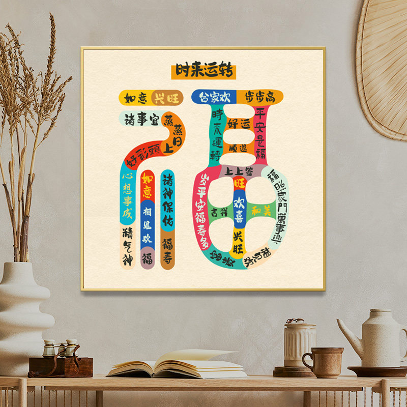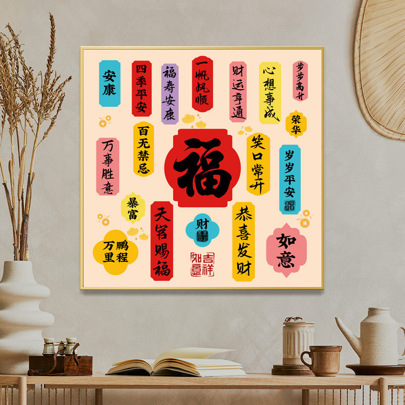 新中式福字玄关装饰画客厅餐厅办公室挂画新年背景墙圆形装饰挂件