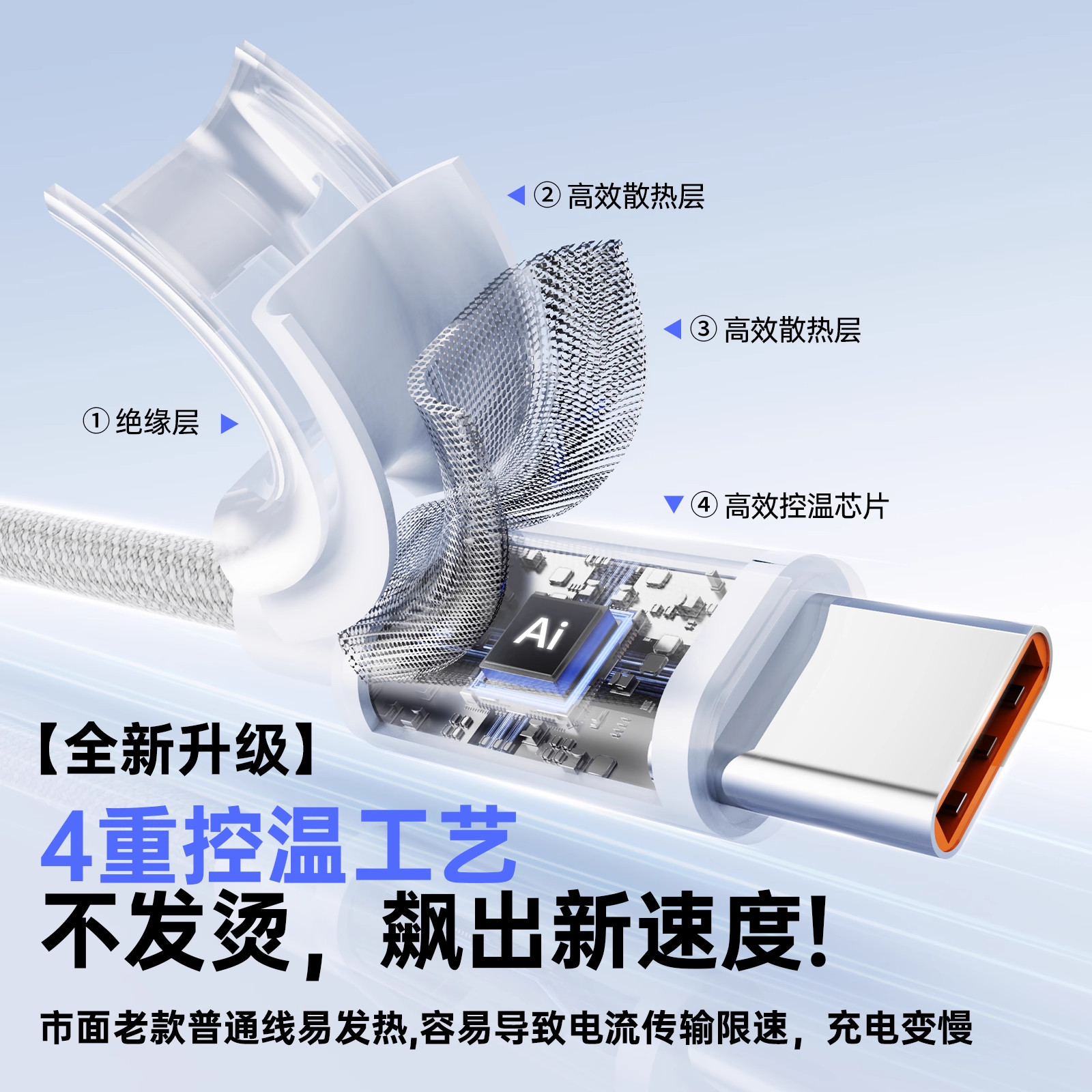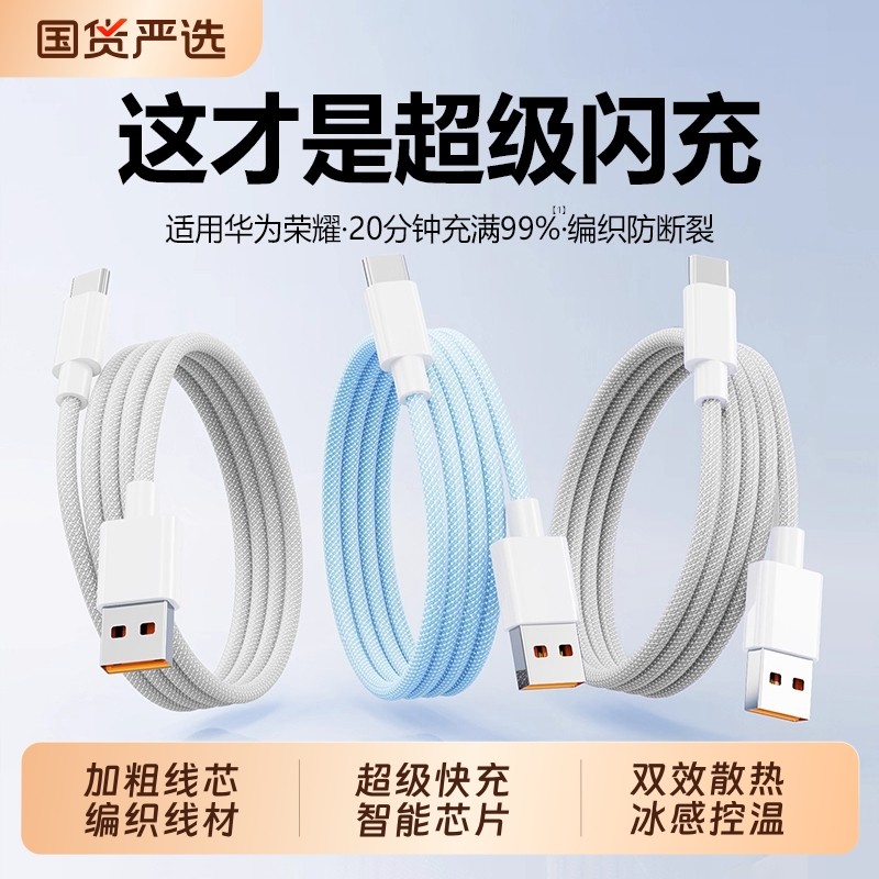 【国家3C认证】快充数据线typec充电线6A适用华为mate40pro/60荣耀小米手机车载编织tpyec安卓原装USB闪充头