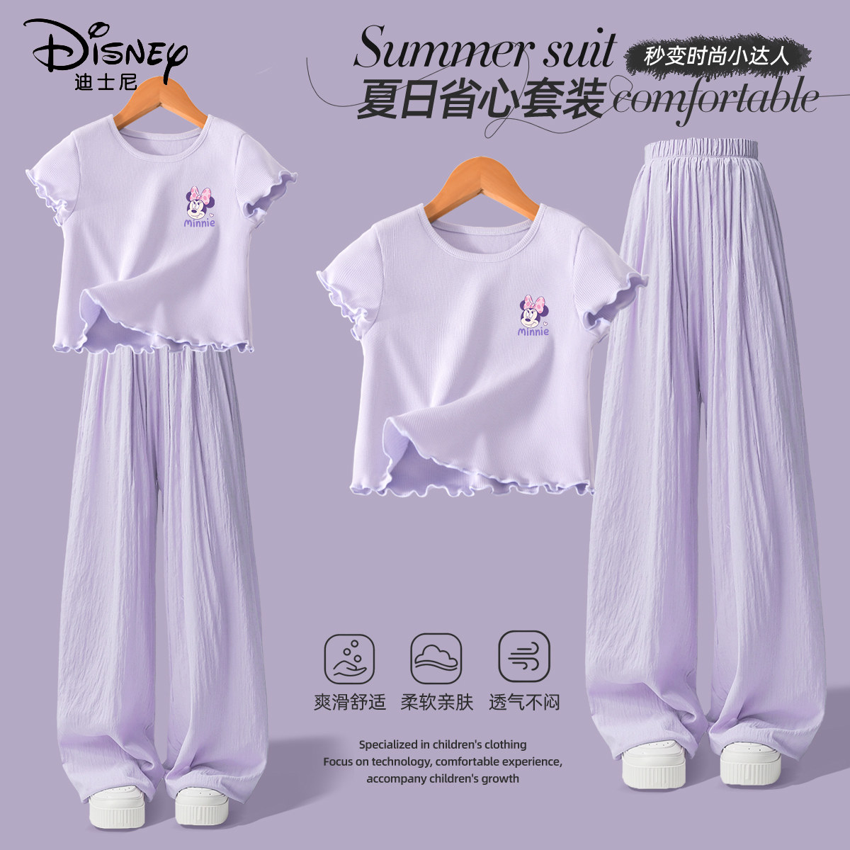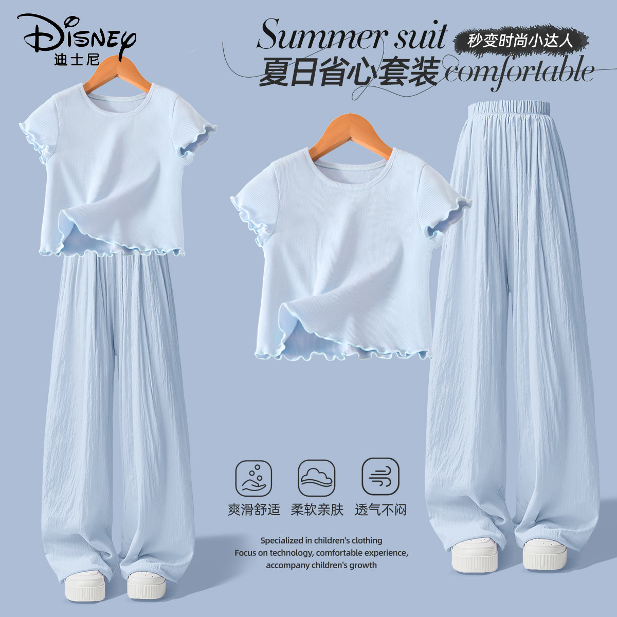 迪士尼女童山本裤夏薄款2025新款洋气时髦女孩阔腿裤儿童夏装裤子