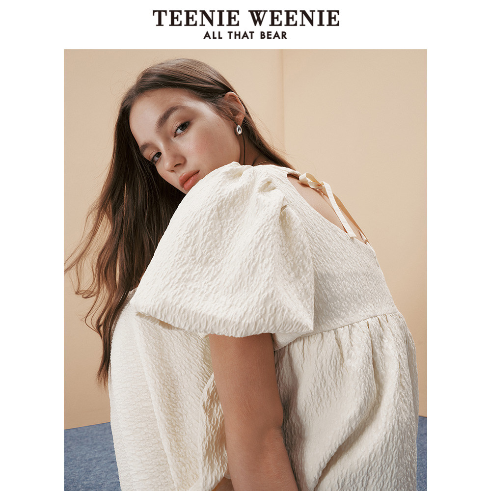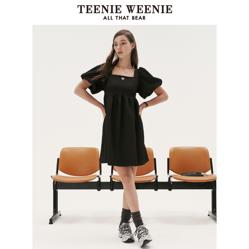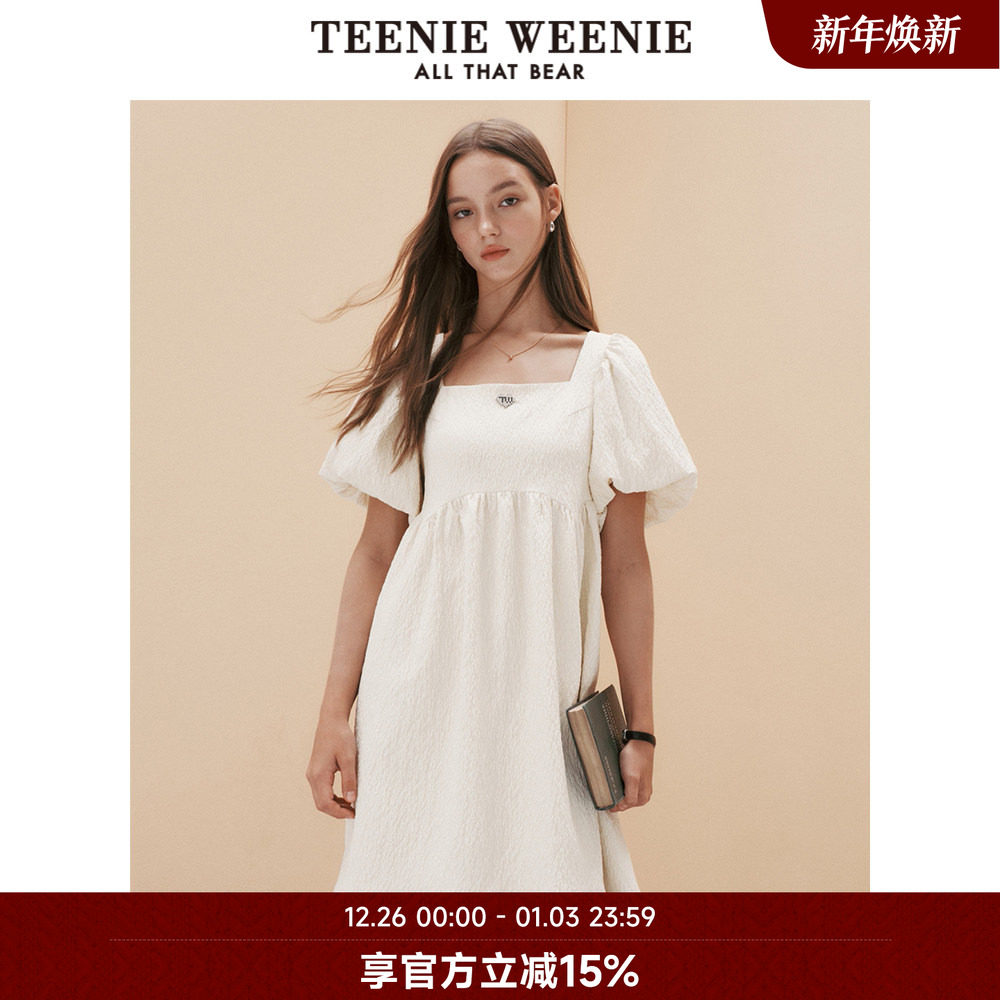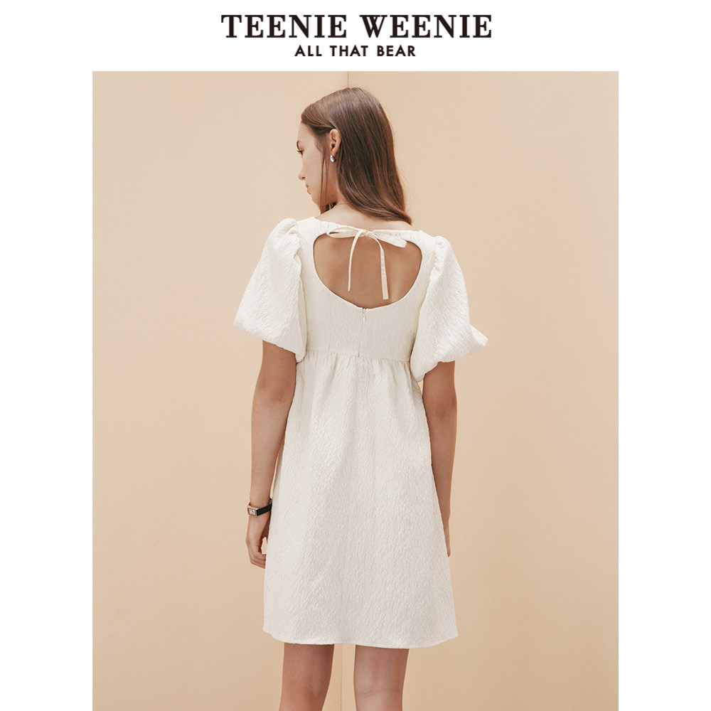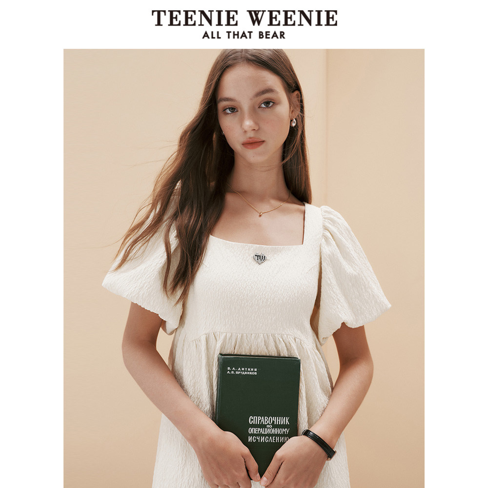 TeenieWeenie小熊奥莱夏季泡泡袖设计方领连衣裙淑女气质裙子女装