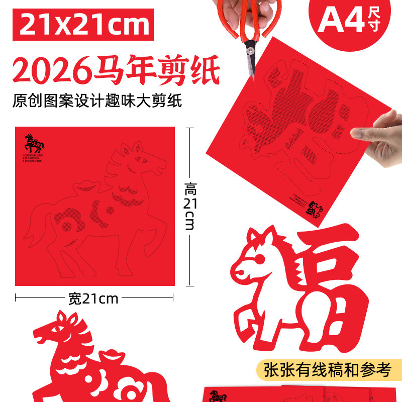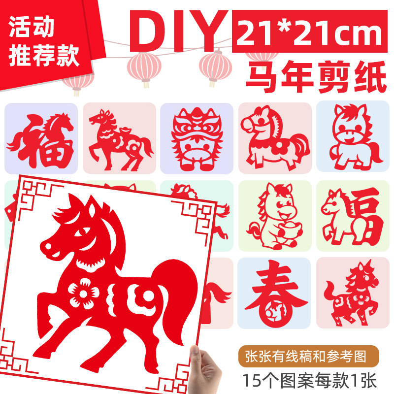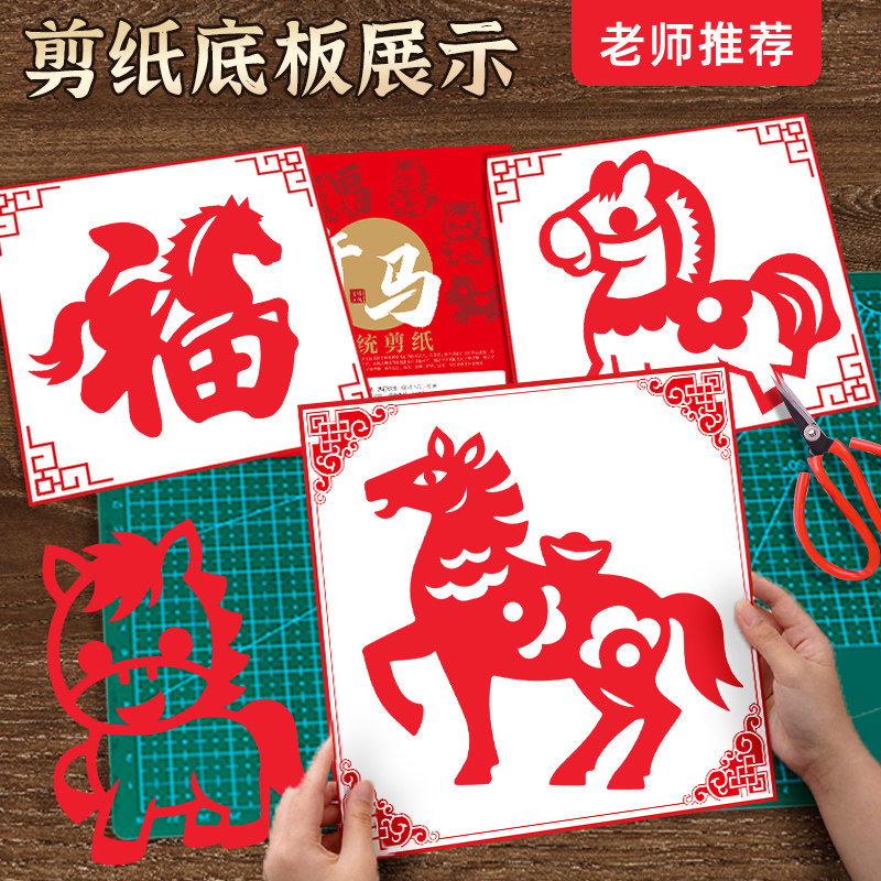 新年窗花儿童剪纸马年春节剪纸手工纸中国风图案底稿折纸专用工具半成品小学生diy制作材料传统民俗活动作品