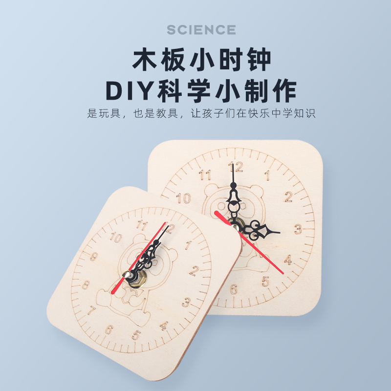 科技小制作手工DIY木质时钟表创意拼装时钟模型时间认知教具玩具