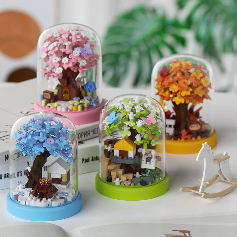 兼容乐高茉莉花积木拼装八音盒系列招财樱花树摆件生日礼物送女生