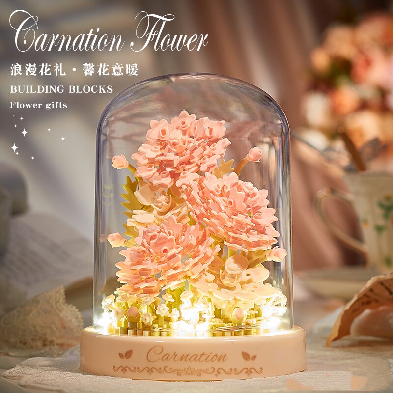 潮乐创积木花永生花束植物拼装玩具摆件送男女朋友情人节生日礼物