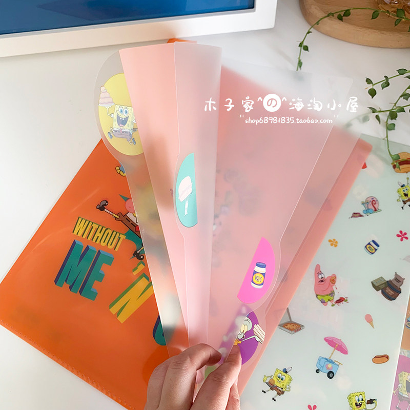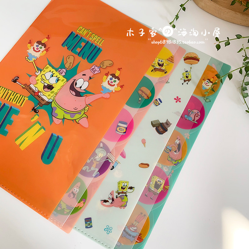 现货 日本带回海绵宝宝派大星限定A4多层文件夹 票据夹封口夹