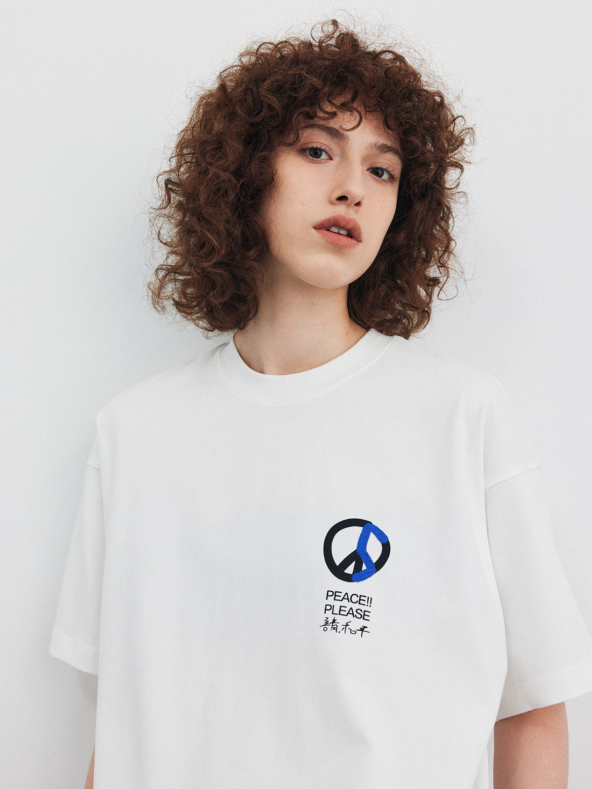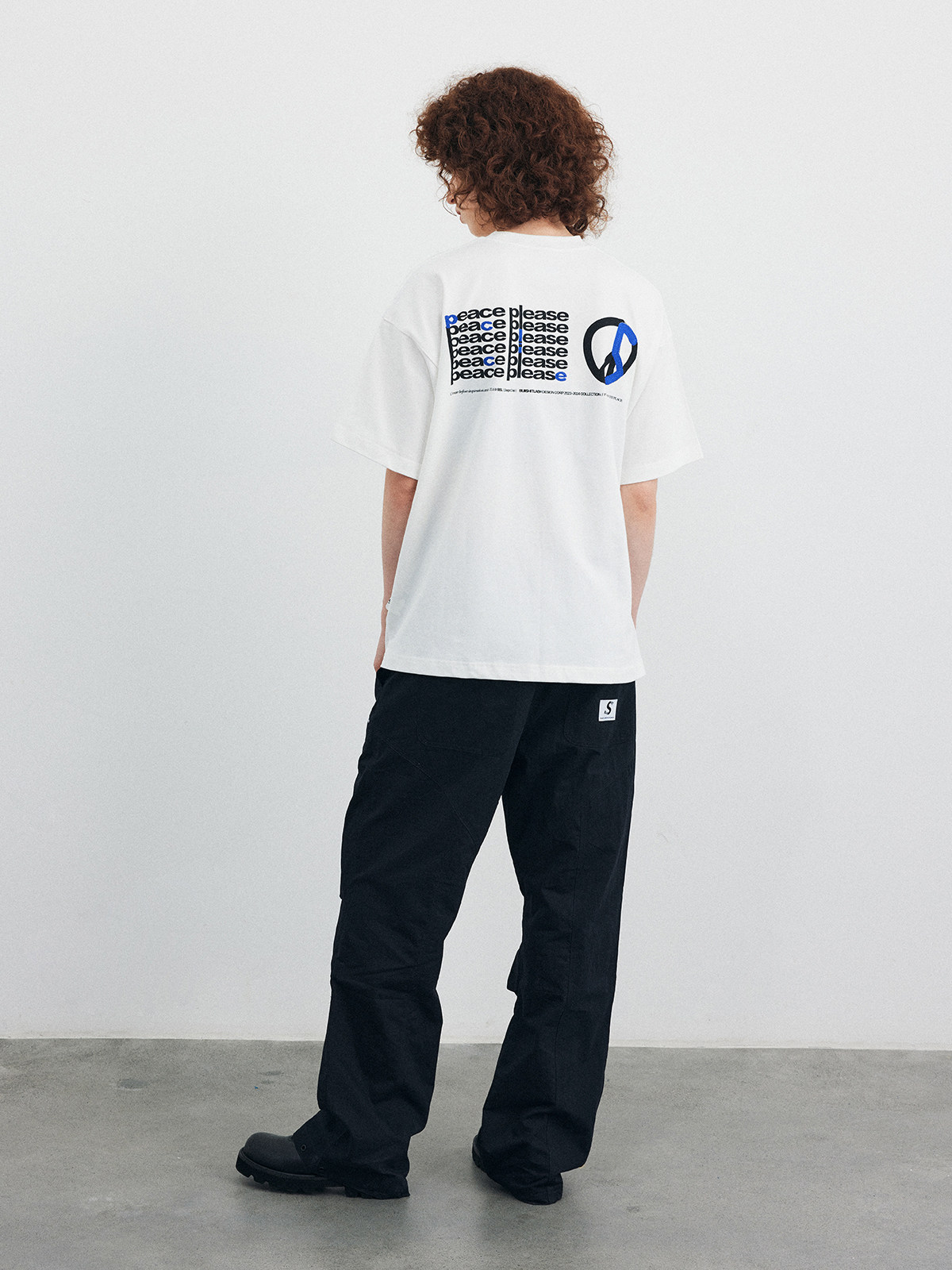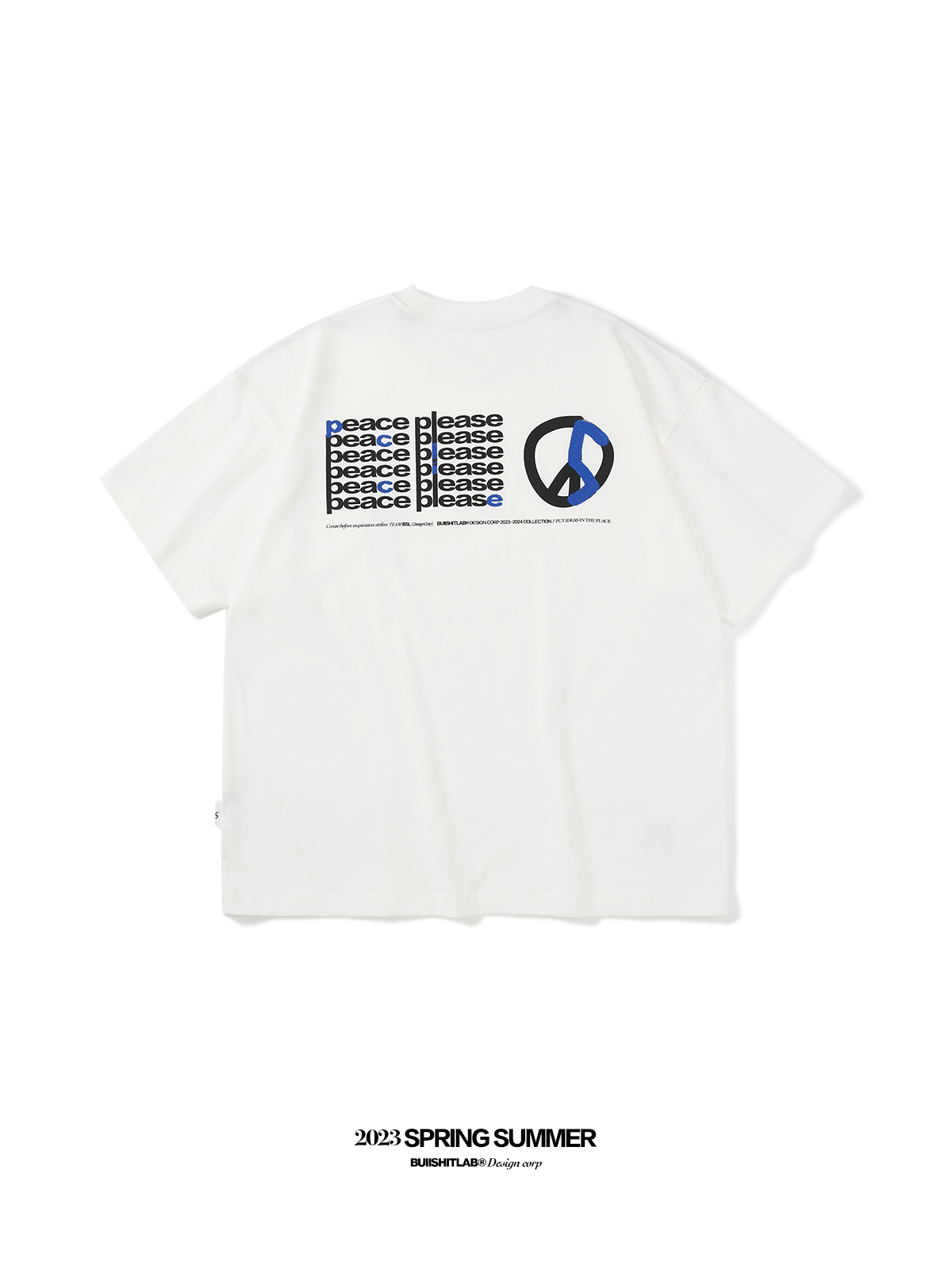 BUllSHITLAB(BSL) 废话实验室 SS23“和平”标语印花宽松短袖T恤