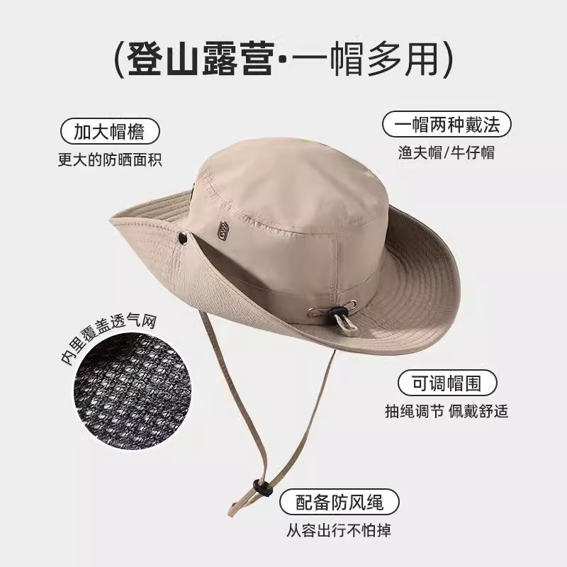 西部牛仔帽男渔夫帽女爬山沙漠防晒帽户外露营遮阳帽子徒步登山帽