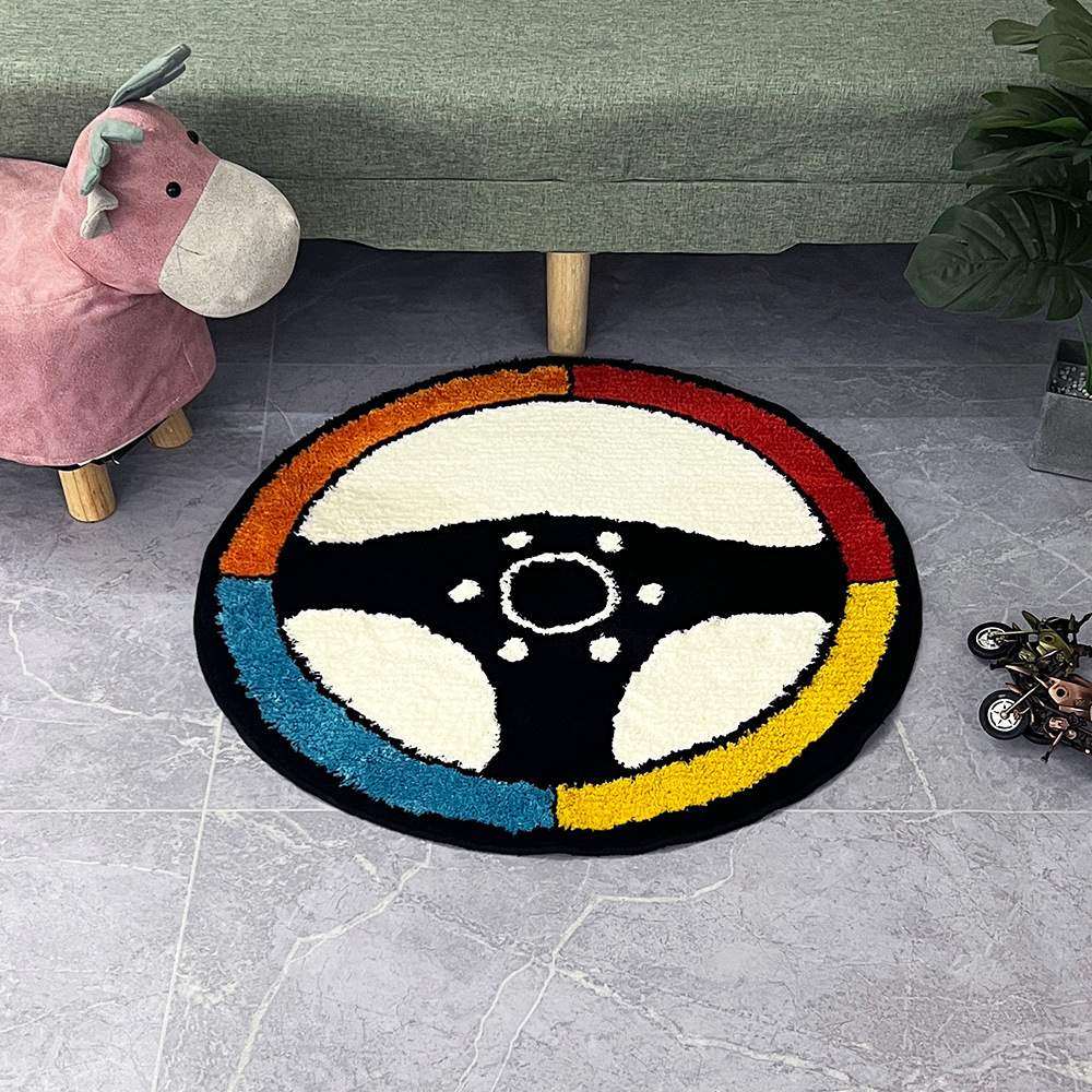 跨境 家用摇椅电脑卧室床边创意圆形毛绒地毯楼梯入门地垫防滑