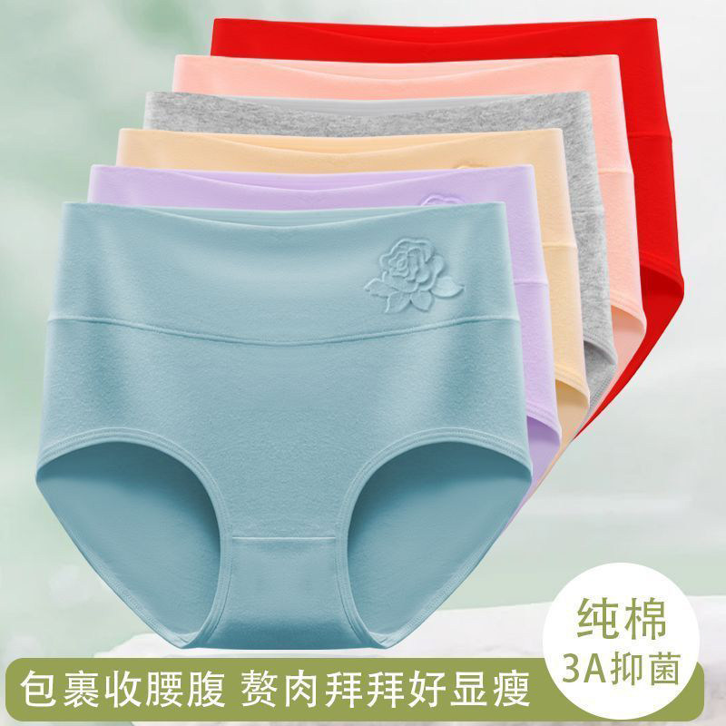 啄木鸟内裤女纯棉高腰收腹全棉抗菌裆舒适新款大码胖mm女士三角裤