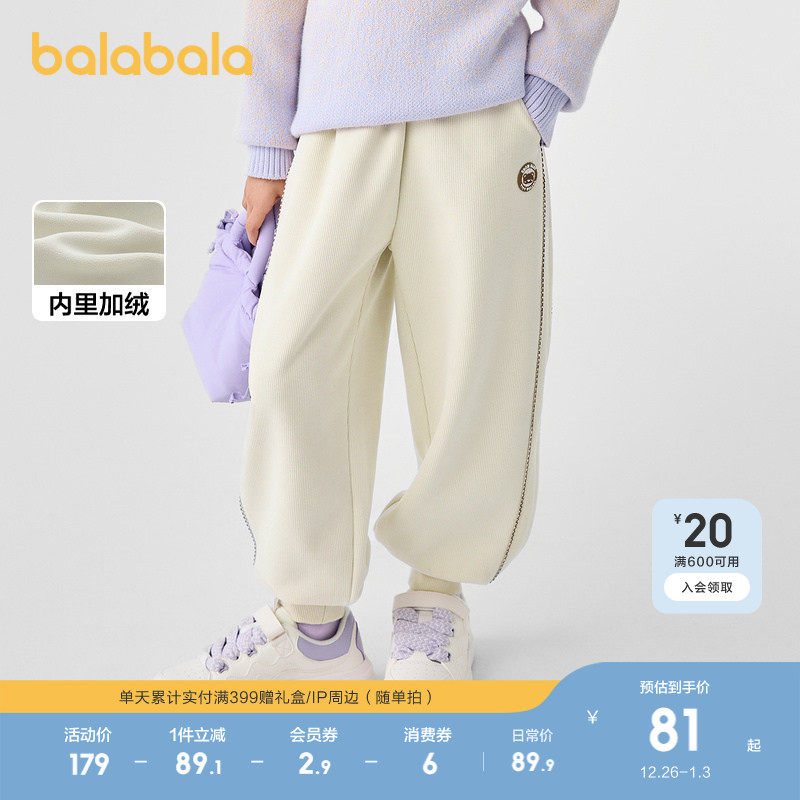 巴拉巴拉童装儿童加绒长裤男女童秋冬装慢跑裤子加绒保暖加厚运动