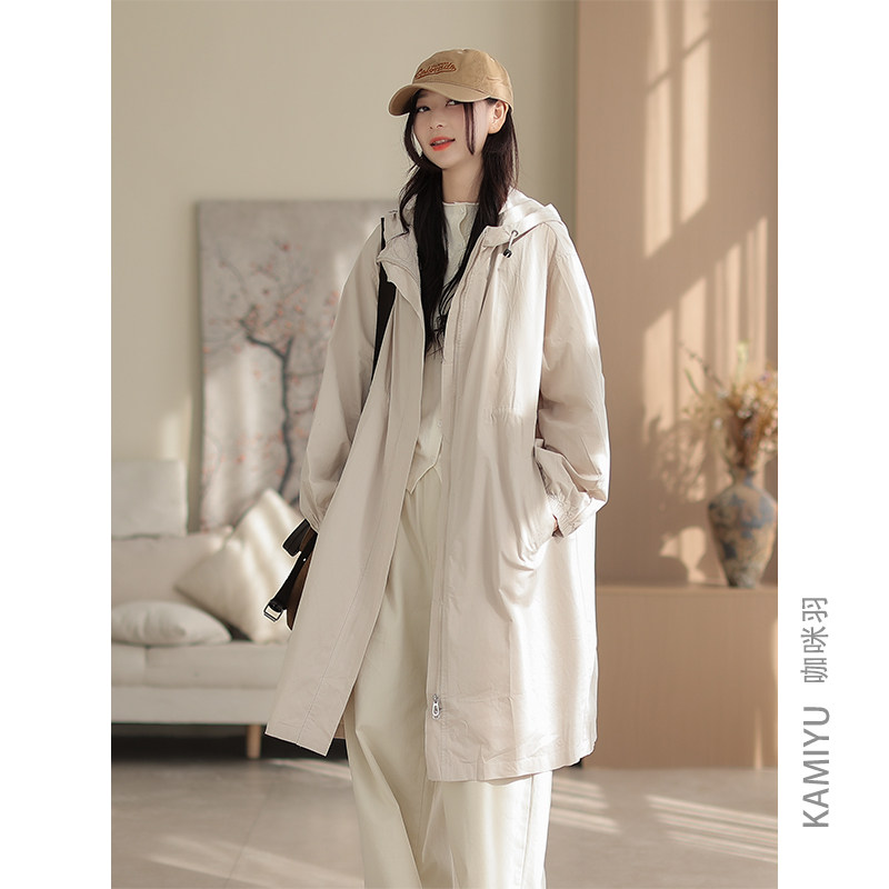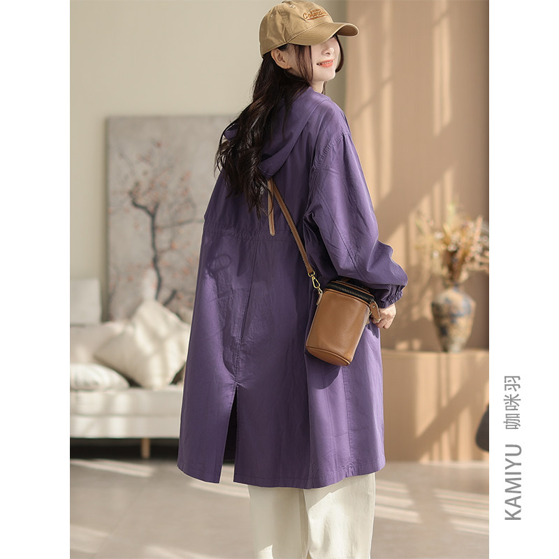 咖咪羽全棉风衣外套中长款收腰显瘦遮肉韩版宽松大码休闲风衣外套